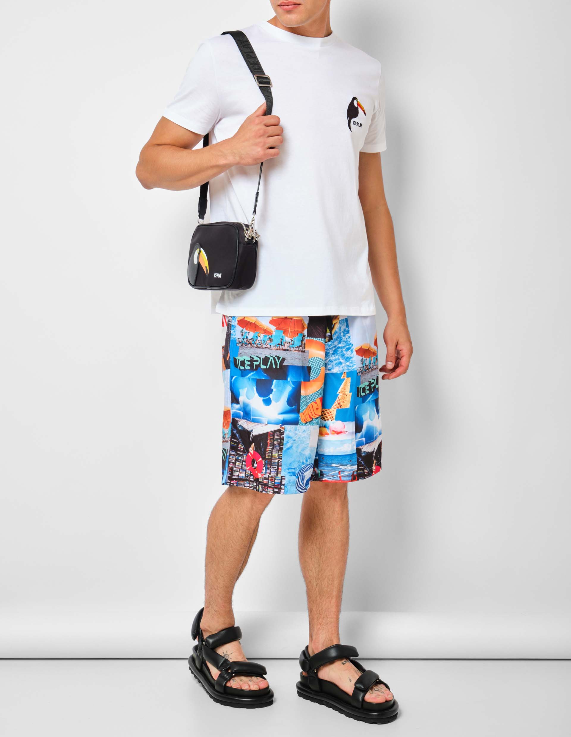 ICE PLAY — это линия модного итальянского бренда ICEBERG, который появился благодаря инициативе французского кутюрье Жана Шарля де Кастельбажака. Именно он 40 лет назад был одним из основателей “Айсберг”, внедрившим в свои изделия оригинальные принты на тканях в виде ключевых фрагментов творчества великого короля поп-арта Энди Уорхола.