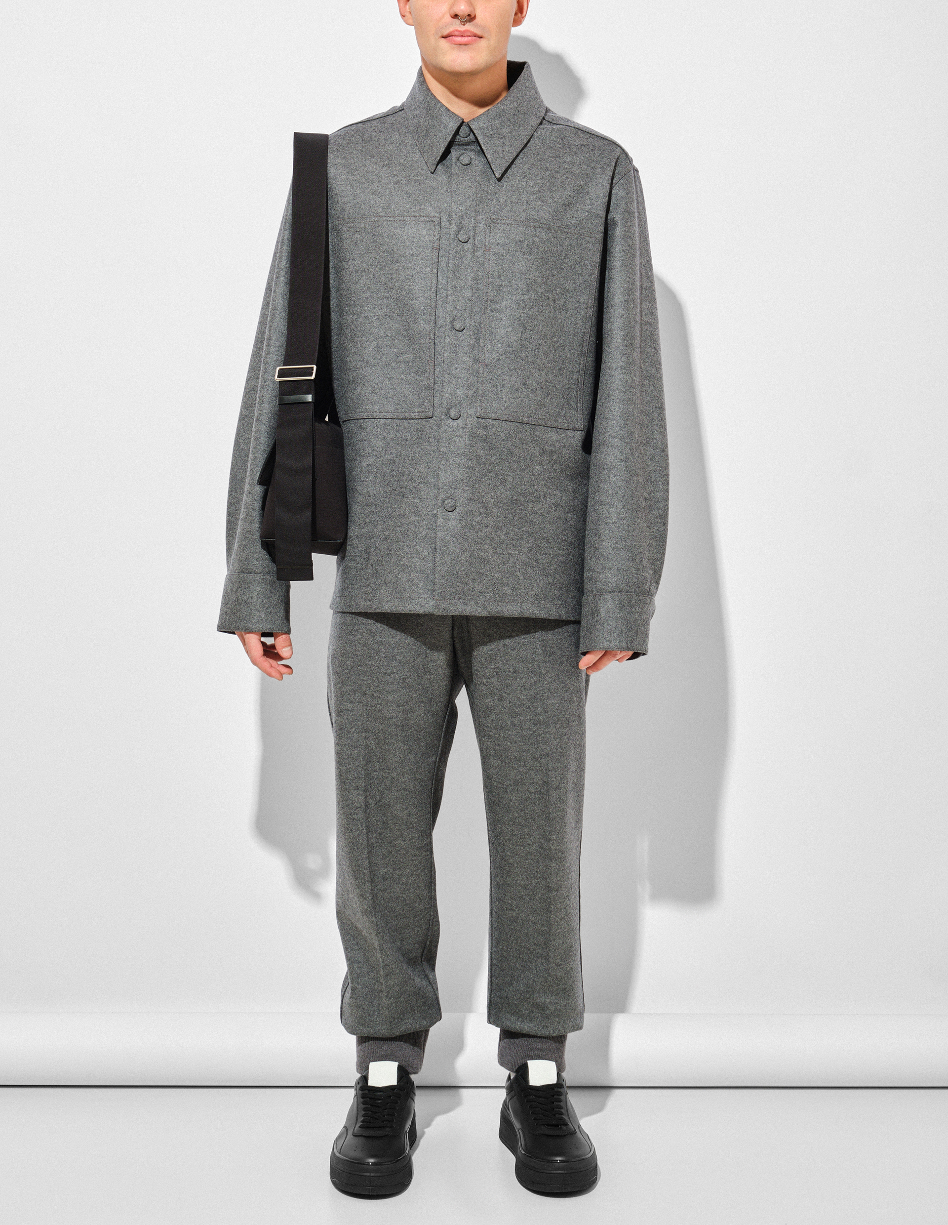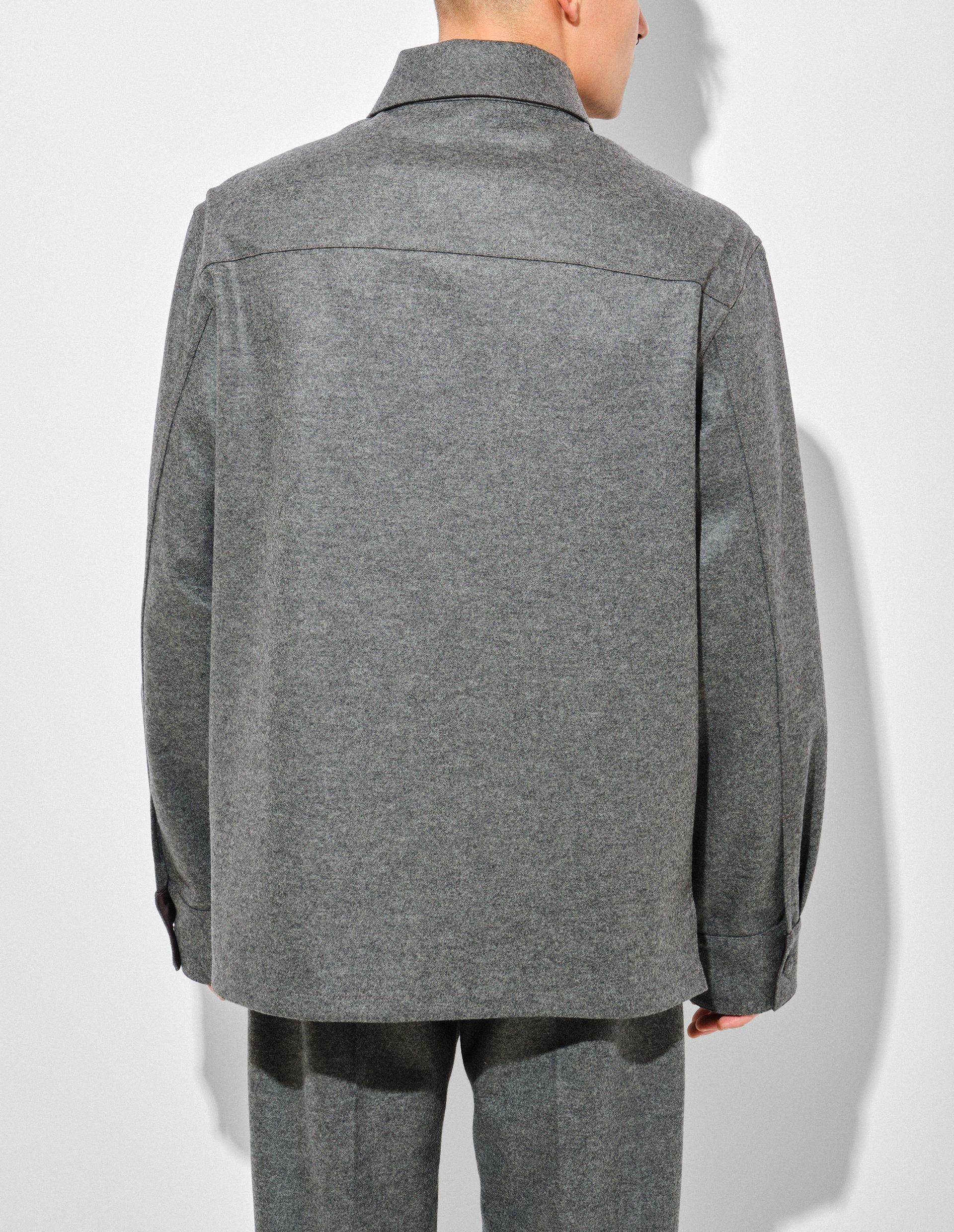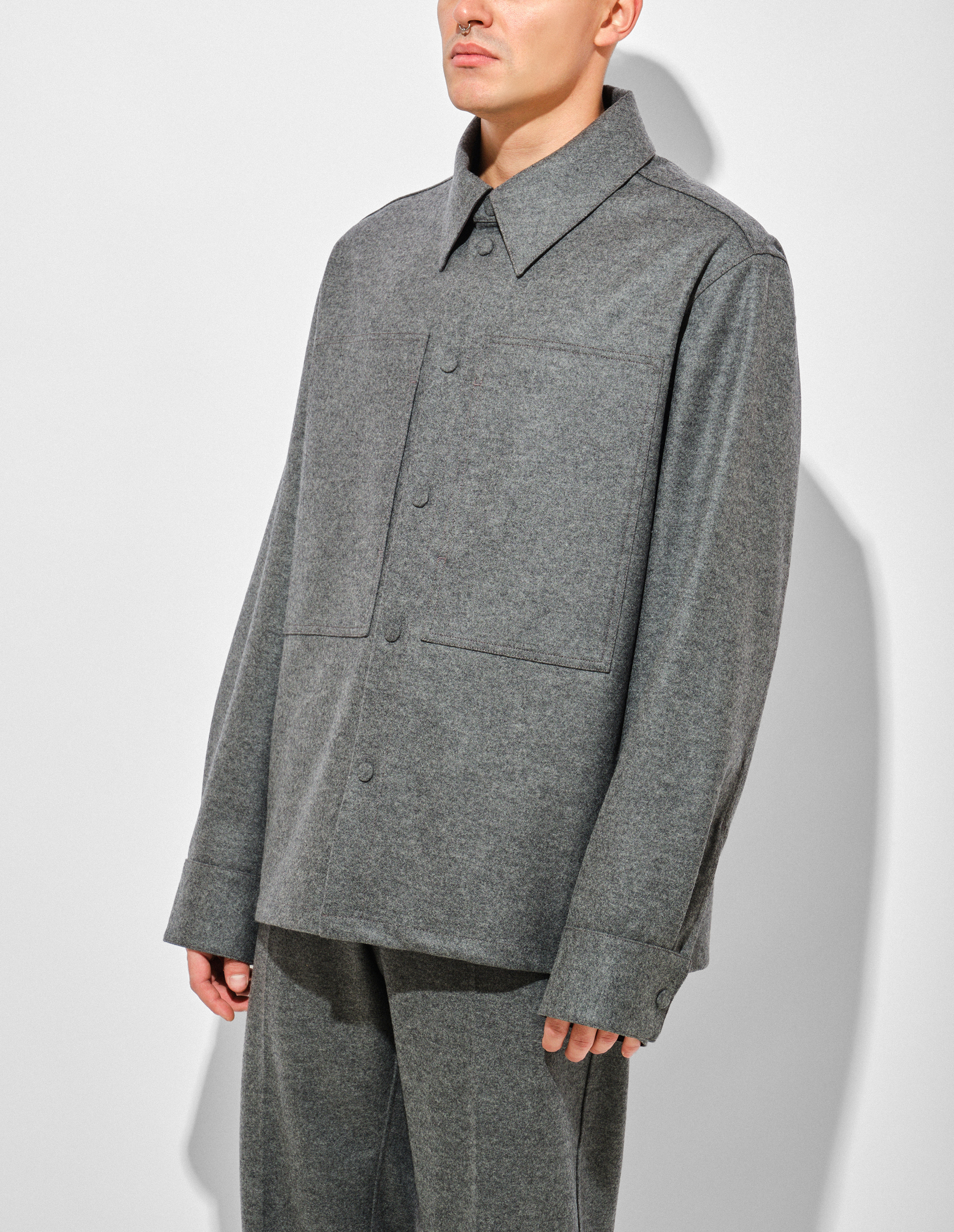 Серая рубашка из 100% шерсти с накладными карманами