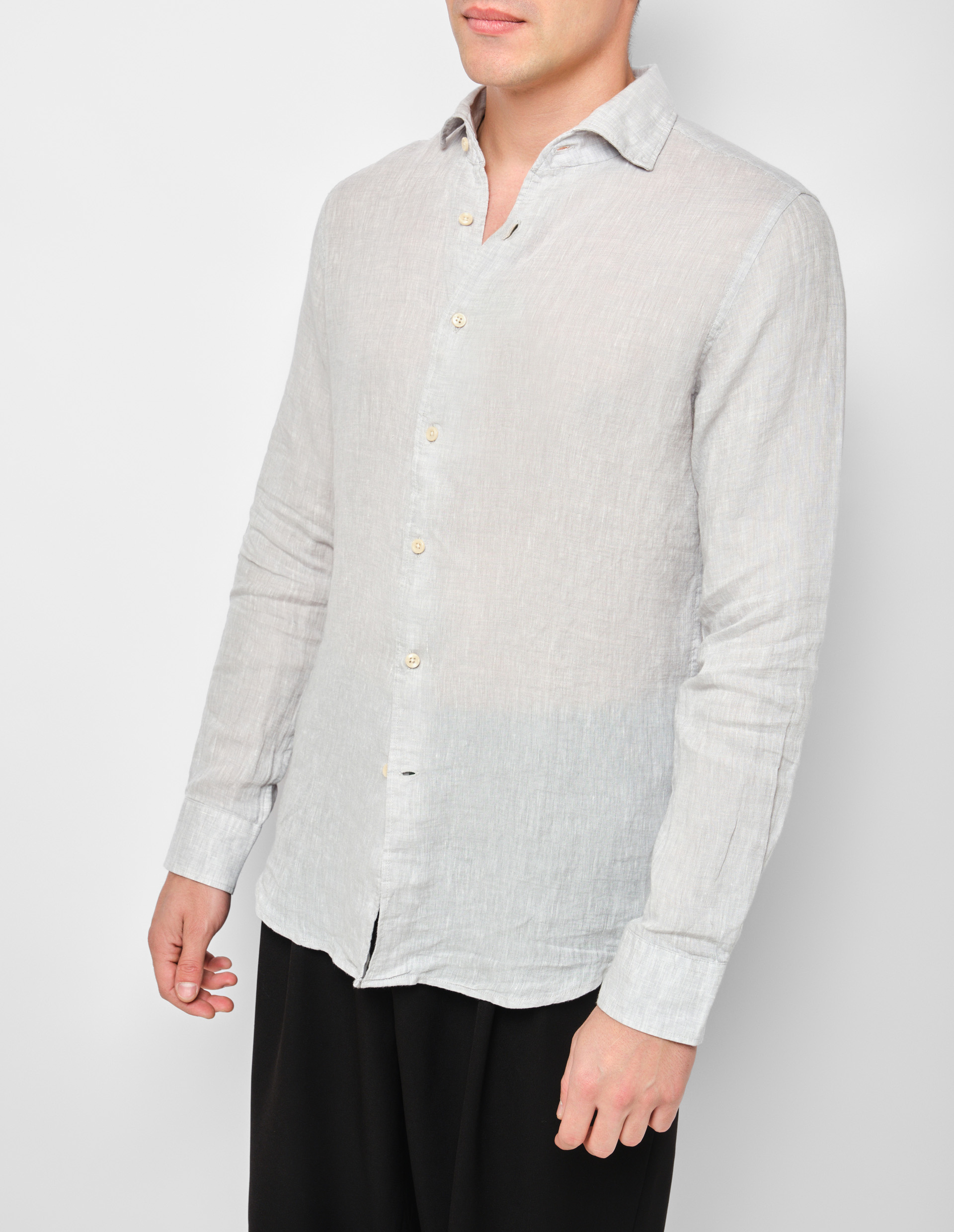 Нестареющая классика. Гладкий, приятный телу лен как основа для комфортных сезонных образов. В гигроскопичной рубашке от Paul Taylor легко даже в сильную жару. Стандартный крой с воротничком и манжетами: рукава можно закатать или опустить. Удобный закругленный подол. Отсутствие планки по центру для большей непринужденности. Ряд из светлых перламутровых пуговиц как дань традициям. Меланжевая расцветка как эффектный акцент. Универсальная база для фантазий на тему смарт-кэжуал, бохо, сафари, стритстайл или ретро.