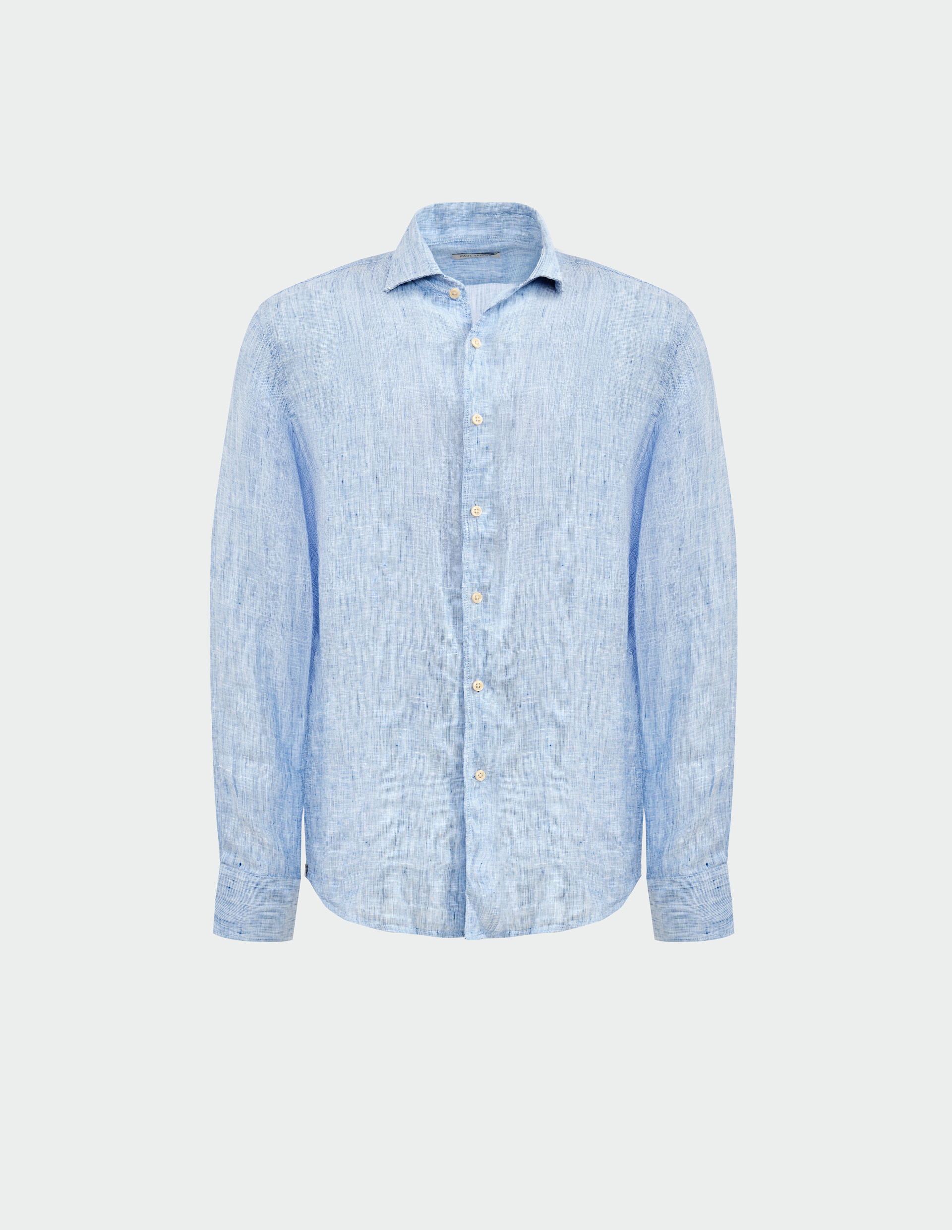 Нестареющая классика. Гладкий, приятный телу лен как основа для комфортных сезонных образов. В гигроскопичной рубашке от Paul Taylor легко даже в сильную жару. Стандартный крой с воротничком и манжетами: рукава можно закатать или опустить. Удобный закругленный подол. Отсутствие планки по центру для большей непринужденности. Ряд из светлых перламутровых пуговиц как дань традициям. Меланжевая расцветка как эффектный акцент. Универсальная база для фантазий на тему смарт-кэжуал, бохо, сафари, стритстайл или ретро.