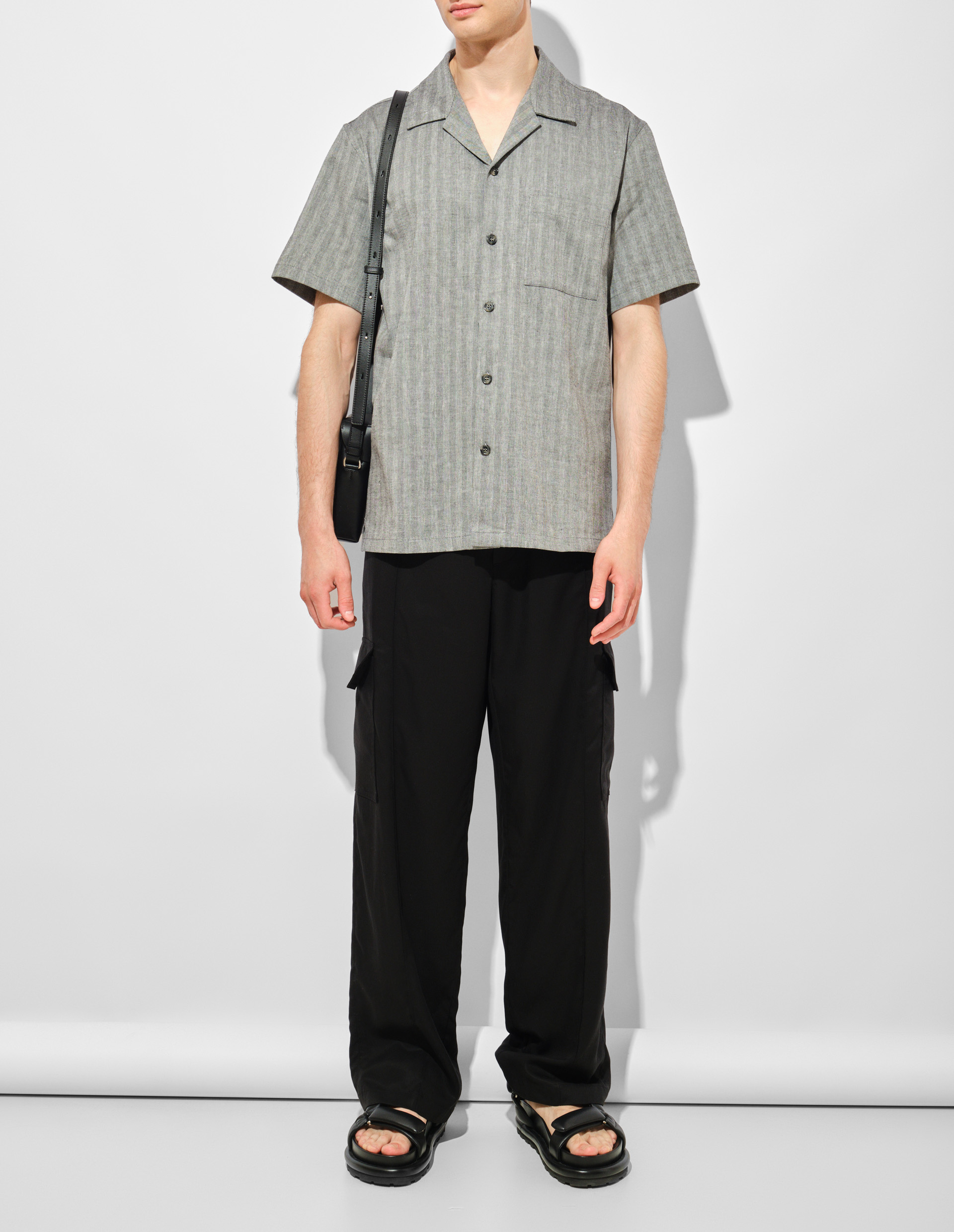 Серая рубашка из хлопка и льна