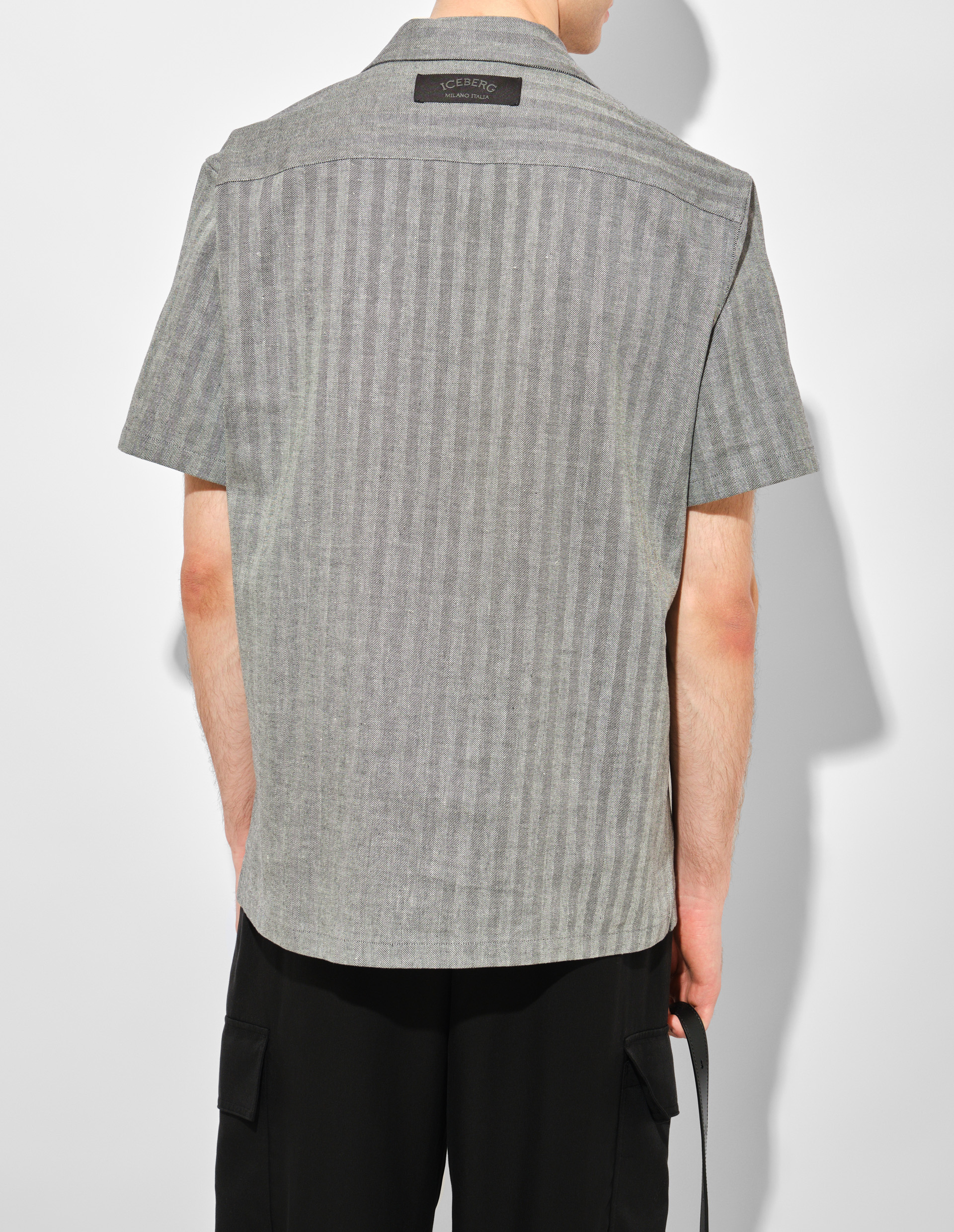Рубашка Iceberg New Fit — современная классика с характером. Свободный силуэт и короткий рукав создают идеальный баланс между комфортом и стилем. Смесь льна и хлопка с текстурированным рисунком «ёлочка» обеспечивает воздухопроницаемость, подчеркивая продуманный крой, а фирменным штрихом выступает карман с вышитым логотипом Iceberg. Эта модель доказывает, что практичность может быть утонченной: минималистичный фасон легко сочетается с любым гардеробом, сохраняя при этом узнаваемую эстетику бренда, качественные материалы и чистые линии.