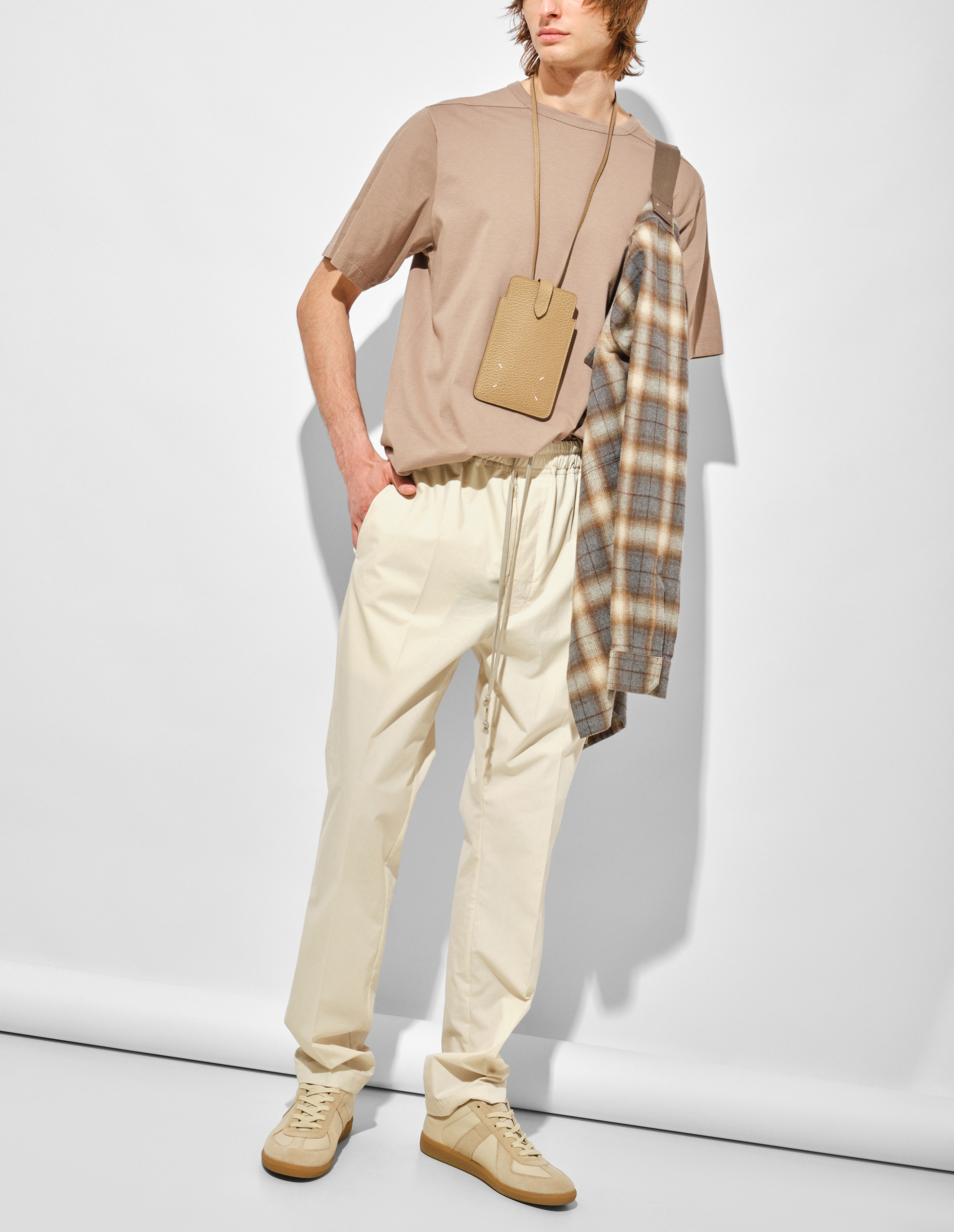 Особенность ткани — мягкая, слегка ворсистая текстура достигается специальной обработкой поверхности, сохраняя легкость и комфорт носки. Уникальная цветовая комбинация создается путем окрашивания хлопковых волокон по отдельности в пять разных оттенков и переплетения их вместе в клетчатый узор.