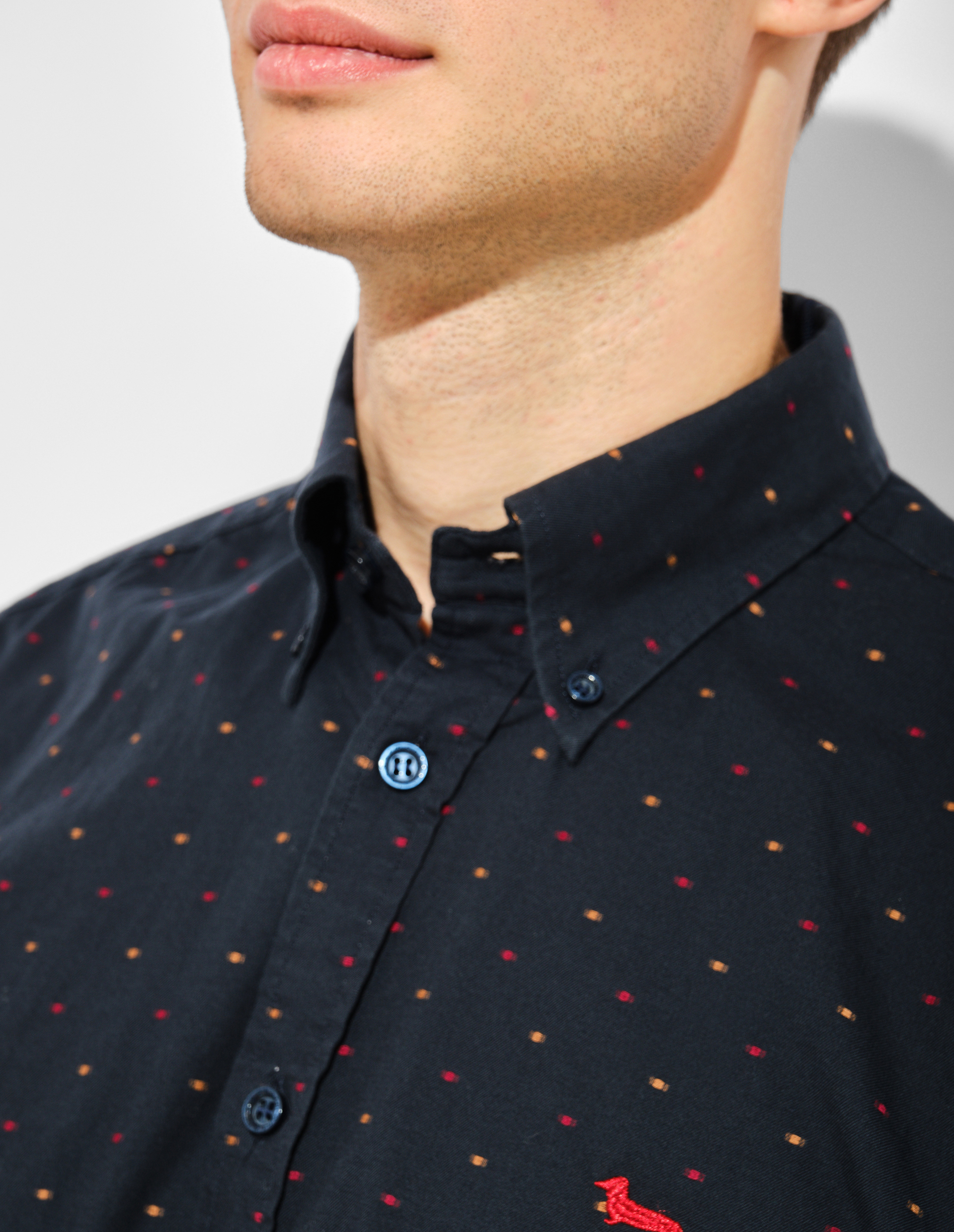 Обновляя каноны классического стиля, Harmont & Blaine предлагает рубашку из отборного хлопка. Тонкий цветной микро-узор по всей поверхности придает модели особенную изысканность и свежесть. Свободный крой обеспечивает комфорт в течение всего дня, а классический воротник на пуговицах подчеркивает универсальность силуэта. Узнаваемая вышивка с таксой на груди вносит игривый акцент, отражающий наследие бренда. Эта рубашка станет гармоничным дополнением делового и повседневного гардероба, демонстрируя сбалансированное сочетание элегантности и индивидуальности, характерное для ДНК Harmont & Blaine.