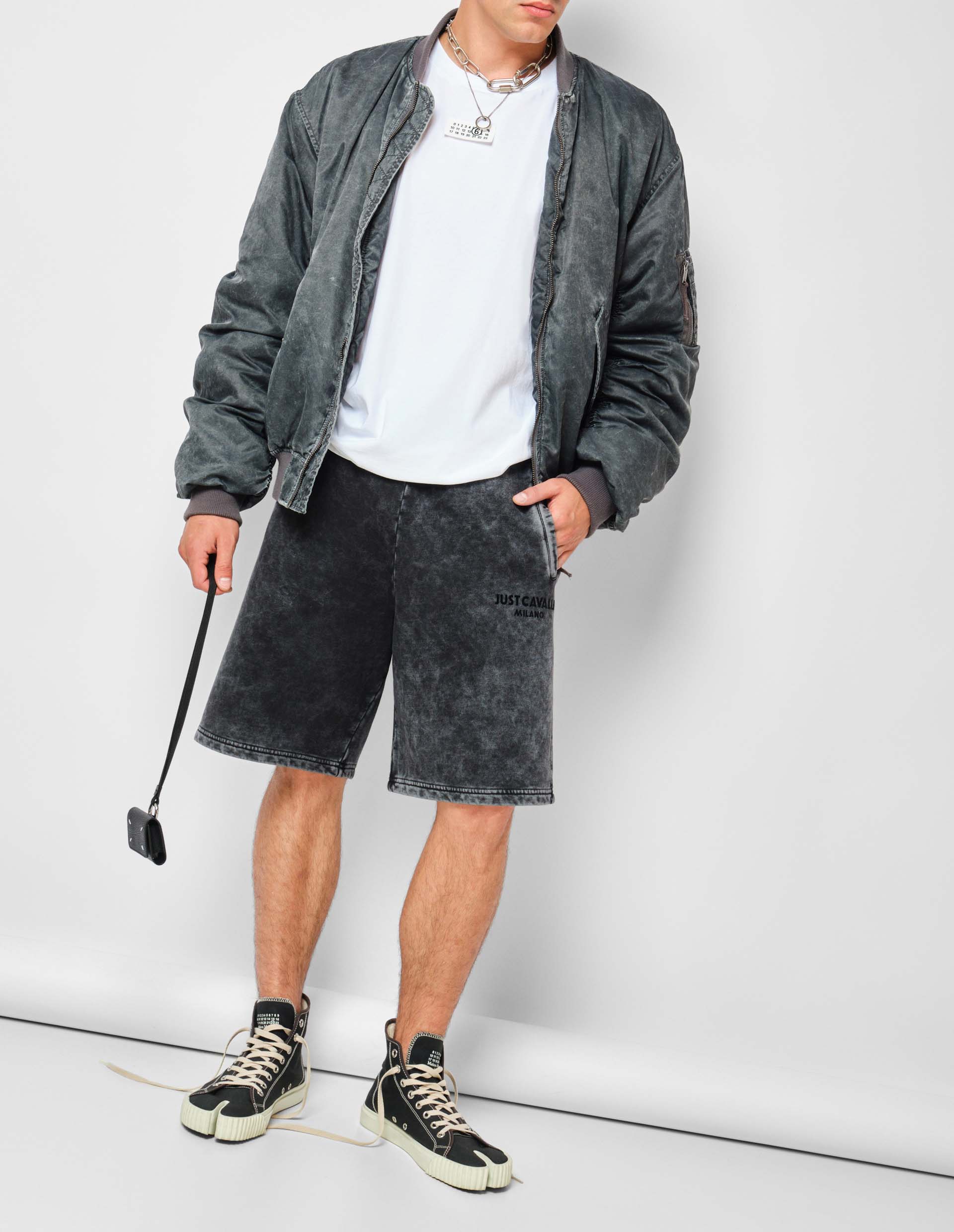 Темно-серые шорты на резинке от свободного и непринужденного бренда Just Cavalli идеально впишутся под современный динамичный ритм жизни. Асфальтовый оттенок гармонично дополнен эффектом кислотной стирки, чтобы придать изделию урбанистического стиля и пикантности, а также легко вписать изделие в городской ландшафт. Свободный крой с эластичной резинкой и кулиской на талии абсолютно беспроигрышный вариант, который отлично садится на любую фигуру, а материал из премиального хлопка обеспечивает необходимый уровень комфорта с ноткой итальянской роскоши.
