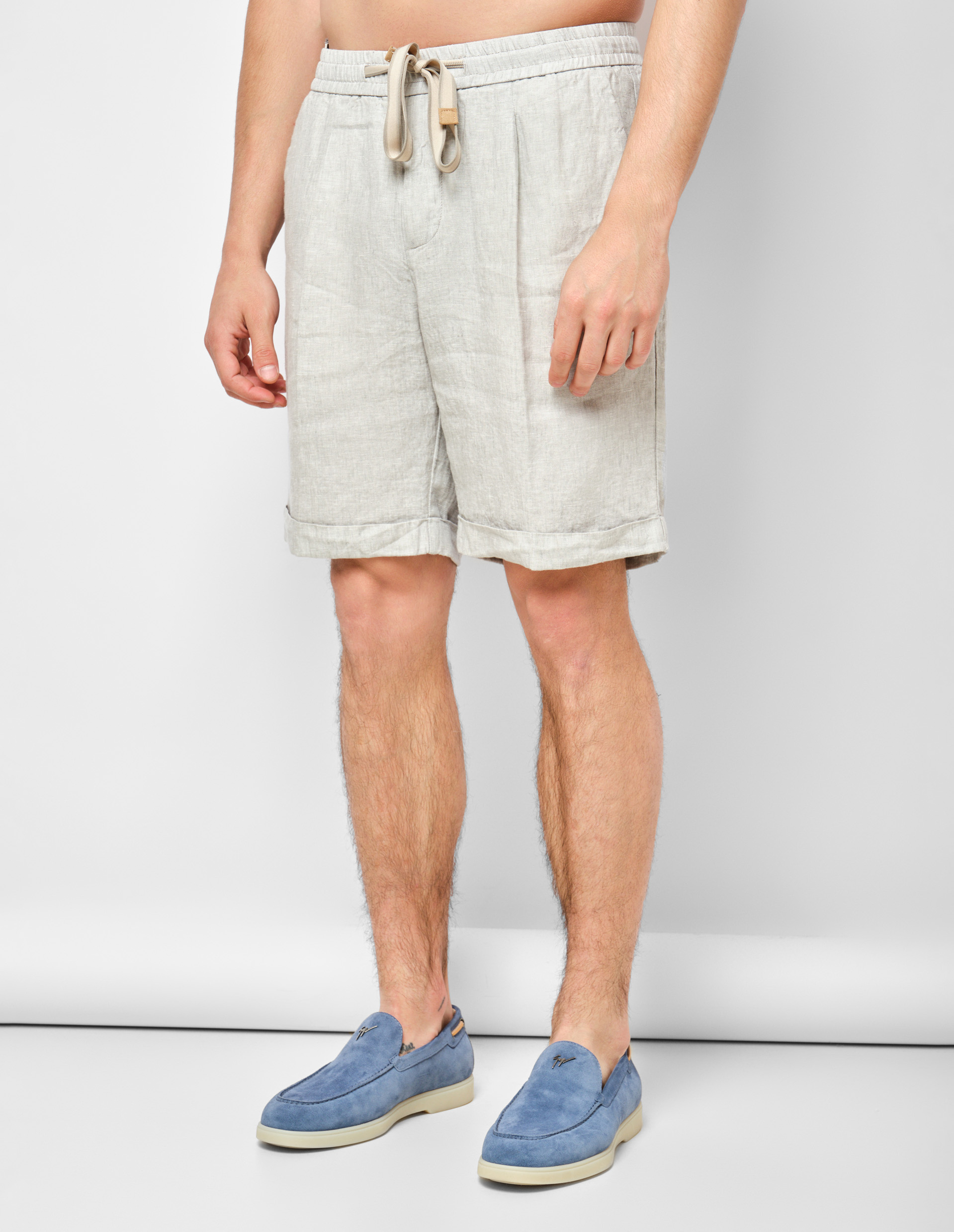 Серые льняные шорты с эластичным поясом