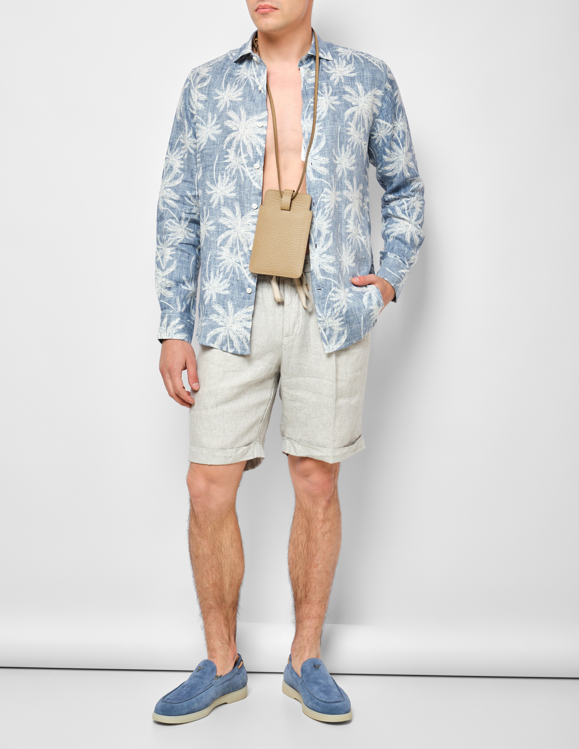 Комфортная летняя модель для тех, кто ценит легкость и качество. Шорты-бермуды выполнены из тонкого льна, в котором так приятно в жаркую погоду. Классический прямой крой дополнен мягким поясом-резинкой с кулиской для оптимальной посадки. Манжеты по краю изделия добавляют оригинальный акцент в лаконичный спортивный дизайн. Задние карманы украшены контрастными пуговицами, боковые — снабжены хлопковой подкладкой. Универсальная модель для сочетания с футболками, худи и рубашками.