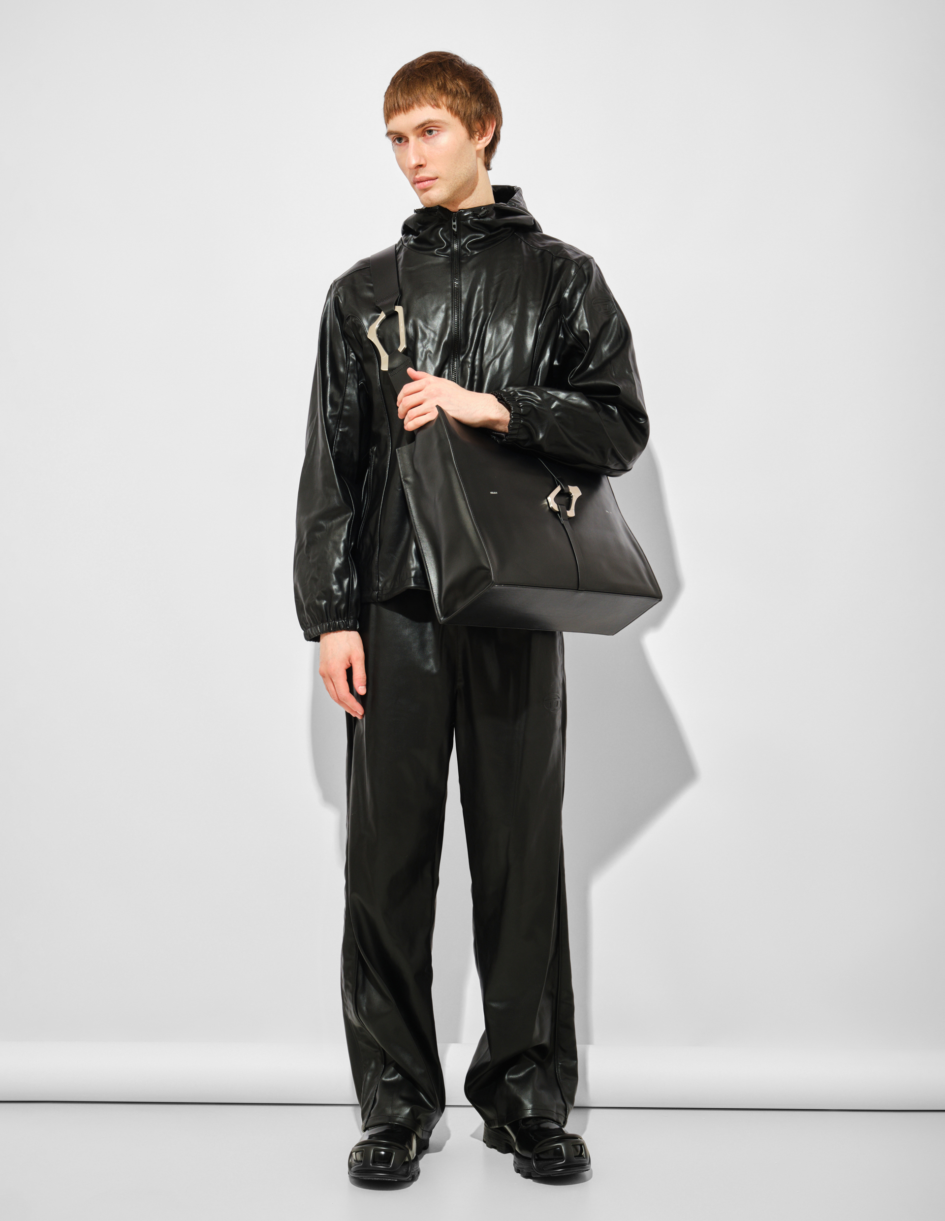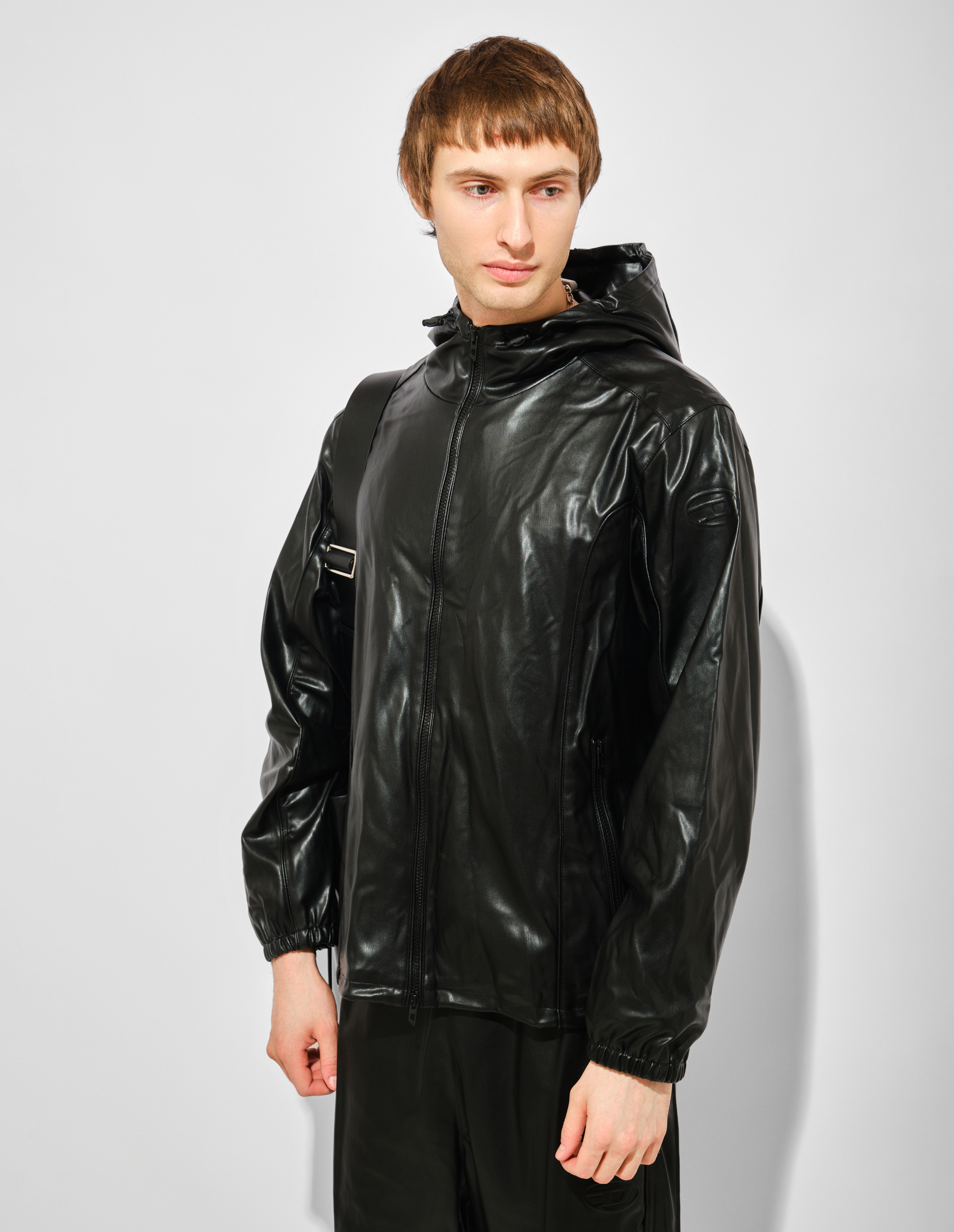 Глянец и бунтарство в чистом виде. Эта куртка от Diesel переосмысливает классическую куртку-ветровку через призму уличной эстетики и современного комфорта, создавая вещь, которая работает как главный акцент любого образа. Черная глянцевая эко-кожа высшего качества сияет и переливается на свету, придавая модели индустриальный шик и космическую футуристичность. Мягкий капюшон добавляет расслабленности и городской функциональности, превращая куртку из чисто байкерского атрибута в универсального спутника для жизни в мегаполисе. Застежка-молния сохраняет чистоту линий и позволяет регулировать посадку — от полностью закрытого минимализма до расслабленной небрежности с расстегнутым верхом. На рукаве — аккуратное тисненое лого Diesel, сдержанная подпись мастера, заметная лишь тем, кто присматривается. Это та самая деталь, которая отличает люксовую вещь от масс-маркета. Сегодня мода на эко-кожу и устойчивое потребление выходит на первый план — эта куртка доказывает, что ответственный подход к материалам не означает компромисс со стилем. Носите ее с классическими джинсами Diesel и грубыми ботинками для создания образа в духе современного рока или с белой футболкой и брюками со стрелками для контраста фактур. Благодаря капюшону и глянцевой поверхности, она одинаково эффектно смотрится как с худи под низом, так и на голое тело.