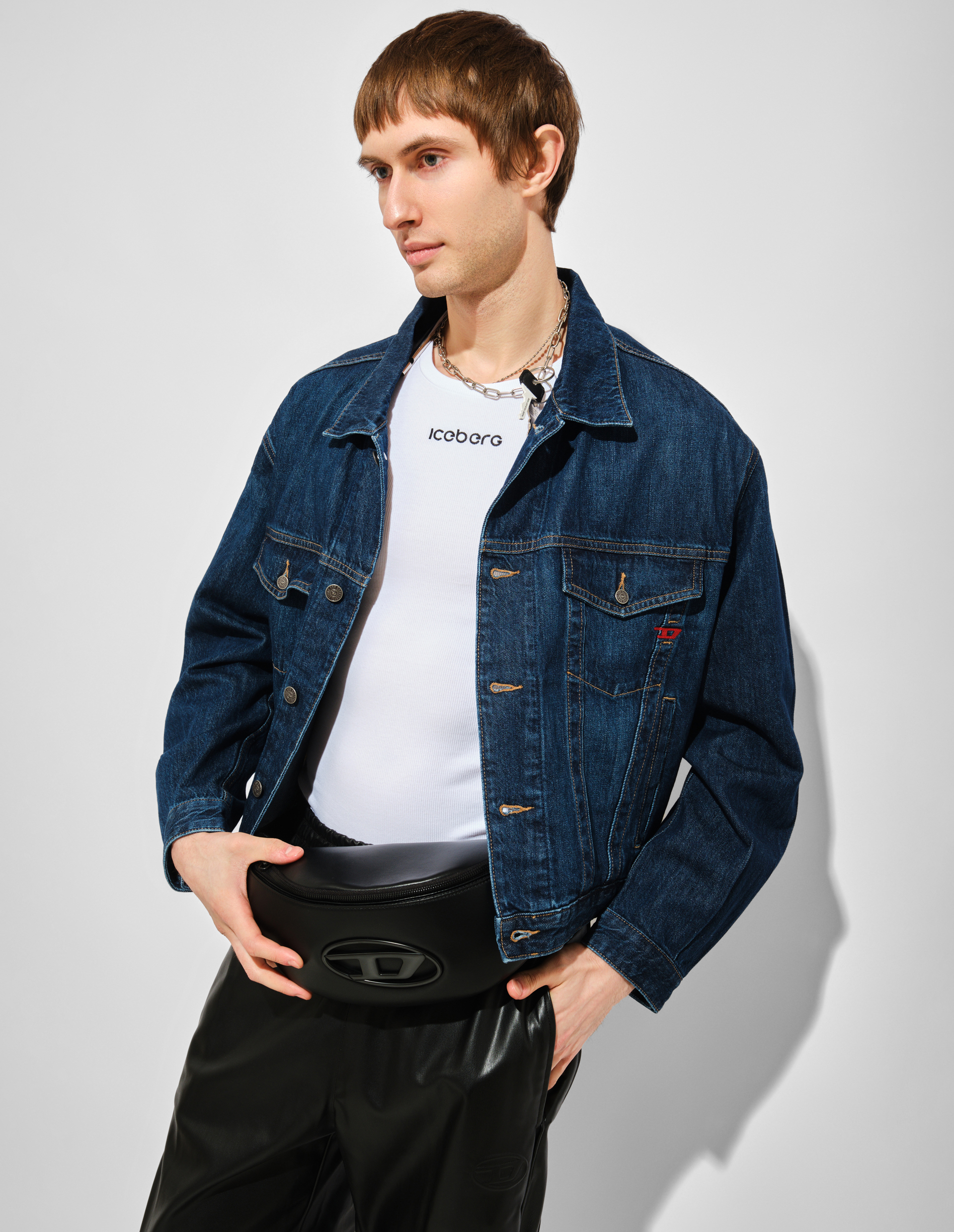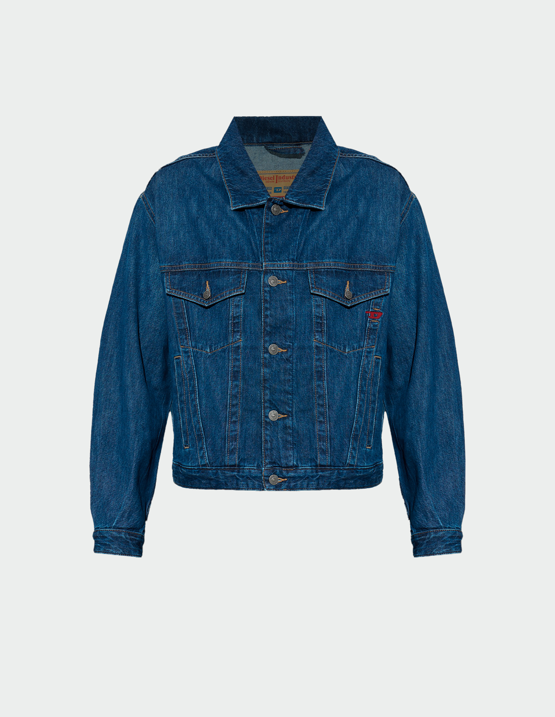 Итальянская классика денима в чистом виде. Эта куртка от Diesel — та самая вещь, которая не стареет и не выходит из моды, лишь обретая с годами благородный винтажный характер. Глубокий темно-синий индиго, насыщенный и благородный, выполнен из стопроцентного хлопкового денима — материала, который дышит, принимает форму вашего тела и становится только лучше с каждой ноской. Укороченная длина добавляет современной дерзости и отлично работает в паре с брюками и юбками с завышенной талией. Классический крой с воротником, застежкой на пуговицы и двумя нагрудными карманами отсылает к наследию рабочей одежды, которую Diesel переосмыслил и превратил в культовый предмет гардероба. Главный акцент — красное вышитое лого D на нагрудном кармане, та самая деталь, которая отличает эту модель от тысяч других джинсовок. Яркий контраст красного на синем приковывает взгляд и делает вещь мгновенно узнаваемой . Это чистый пример классики Diesel: бескомпромиссное качество, продуманный крой и фирменная дерзость в деталях. В эру Гленна Мартенса бренд возвращается к архивам, и эта куртка — прямая отсылка к девяностым, когда деним Diesel стал культовым по всему миру.