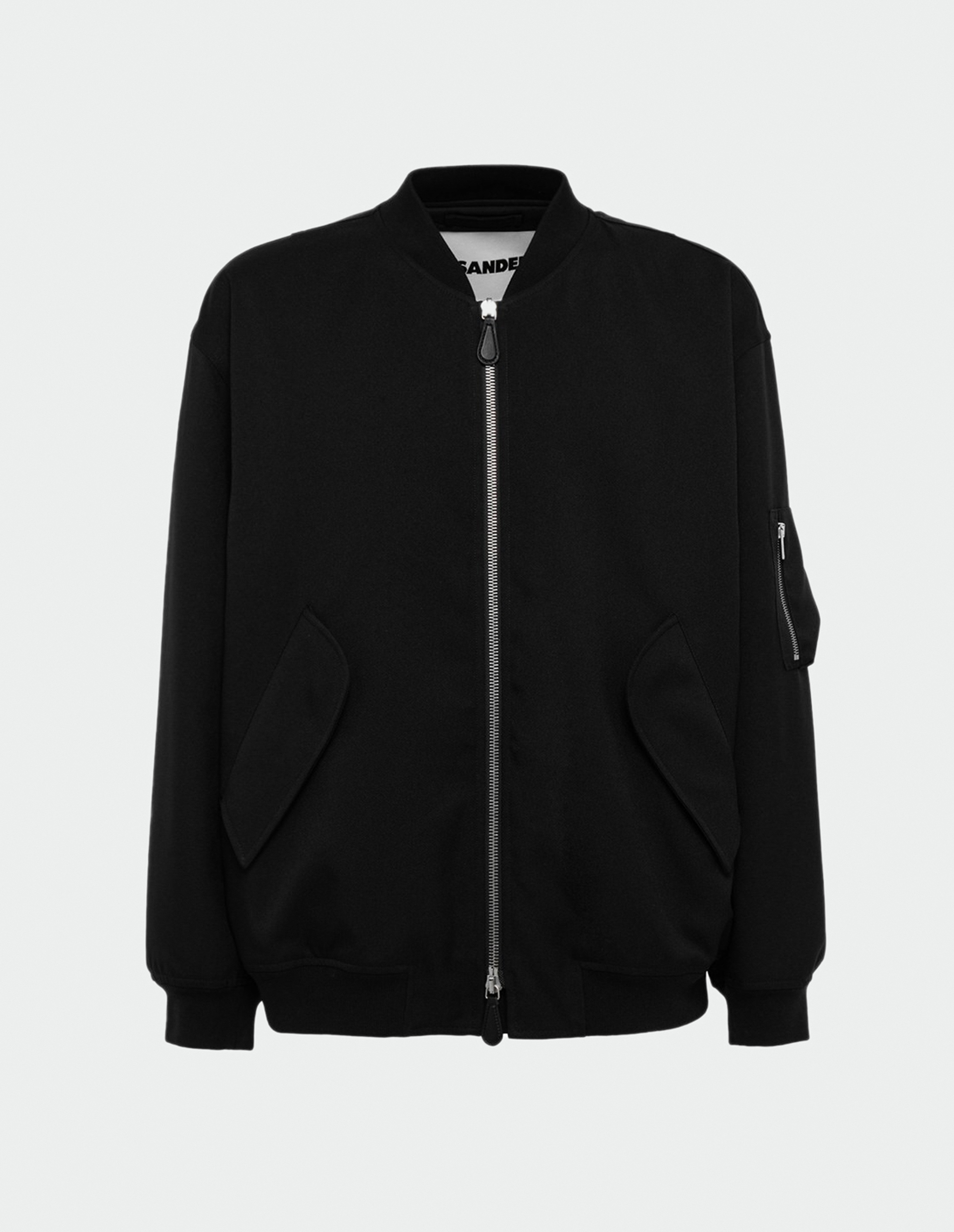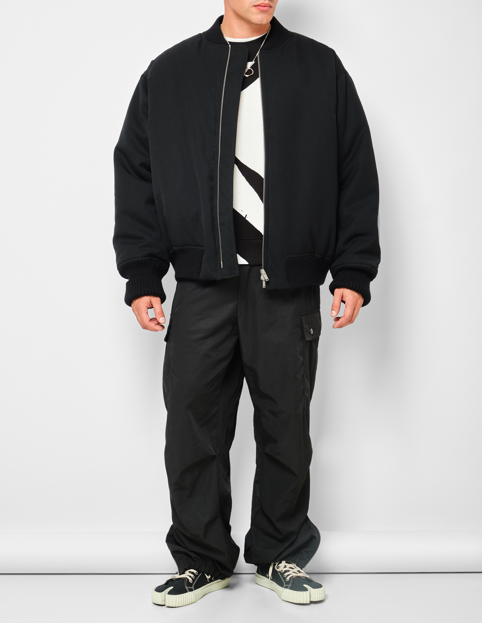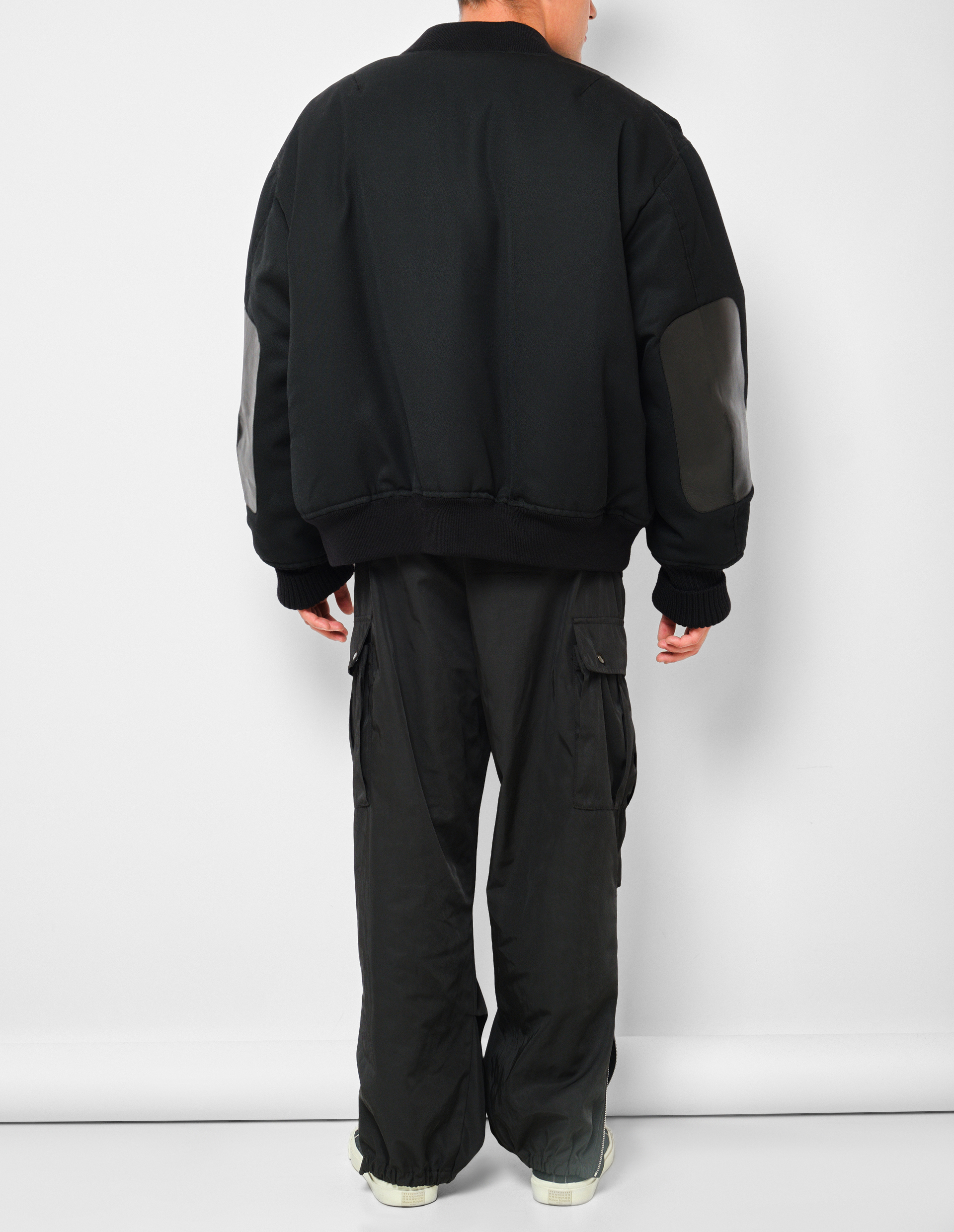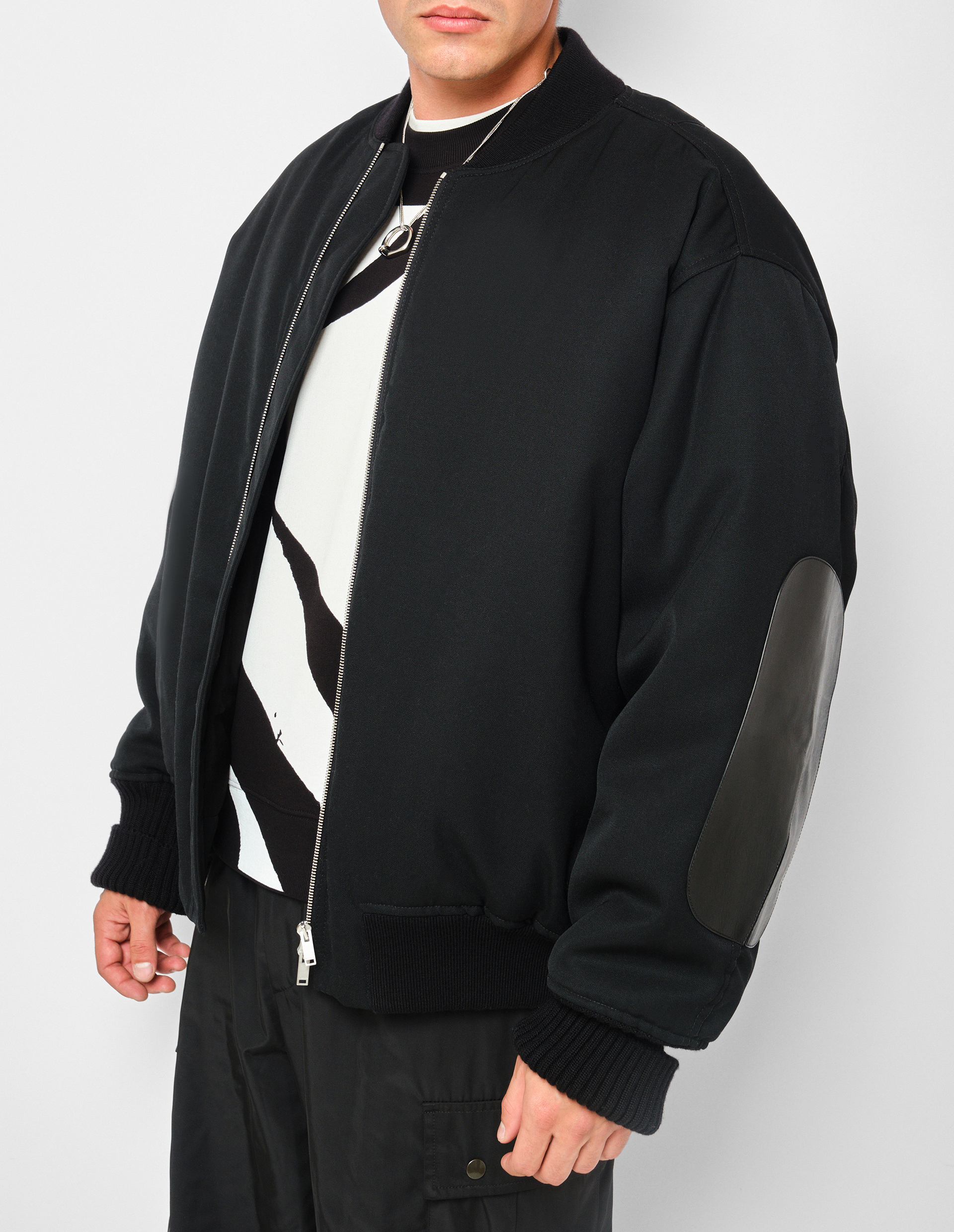 Черный бомбер из вирджинской шерсти с кожаными вставками на рукавах
