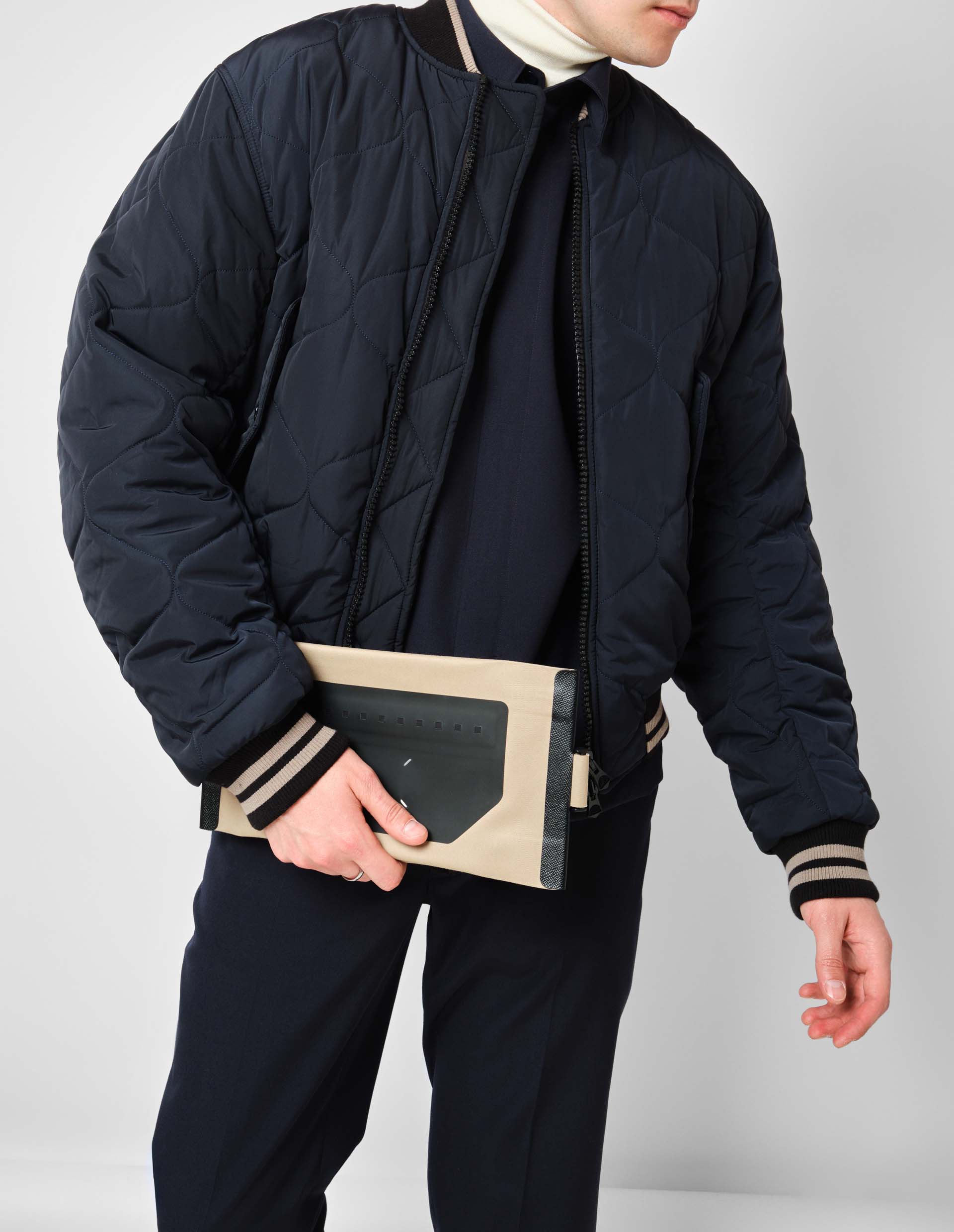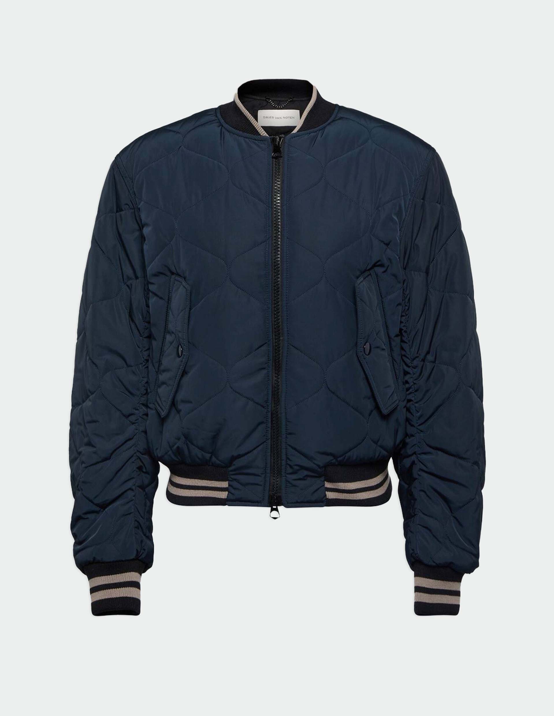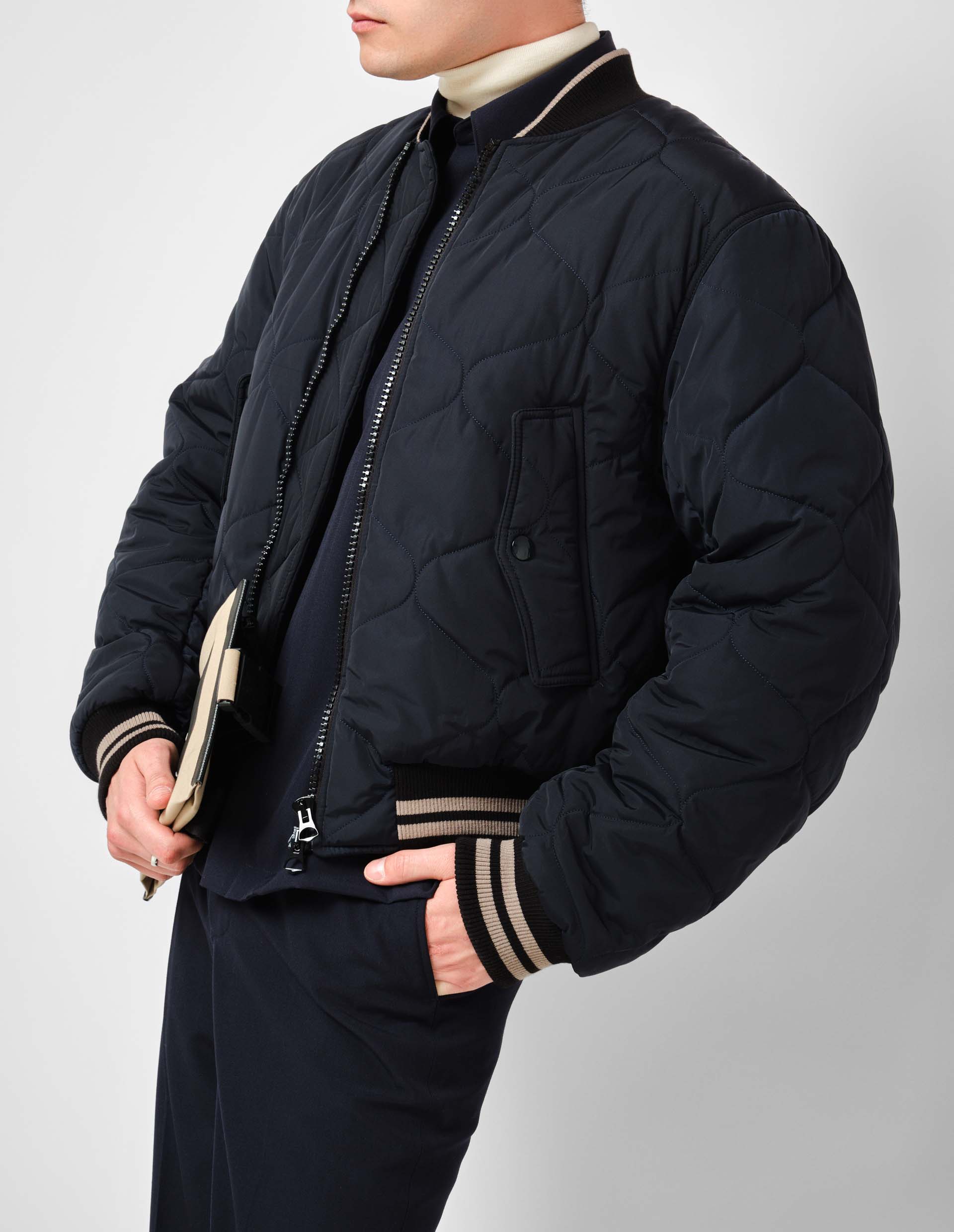 Темно-синий стеганый бомбер