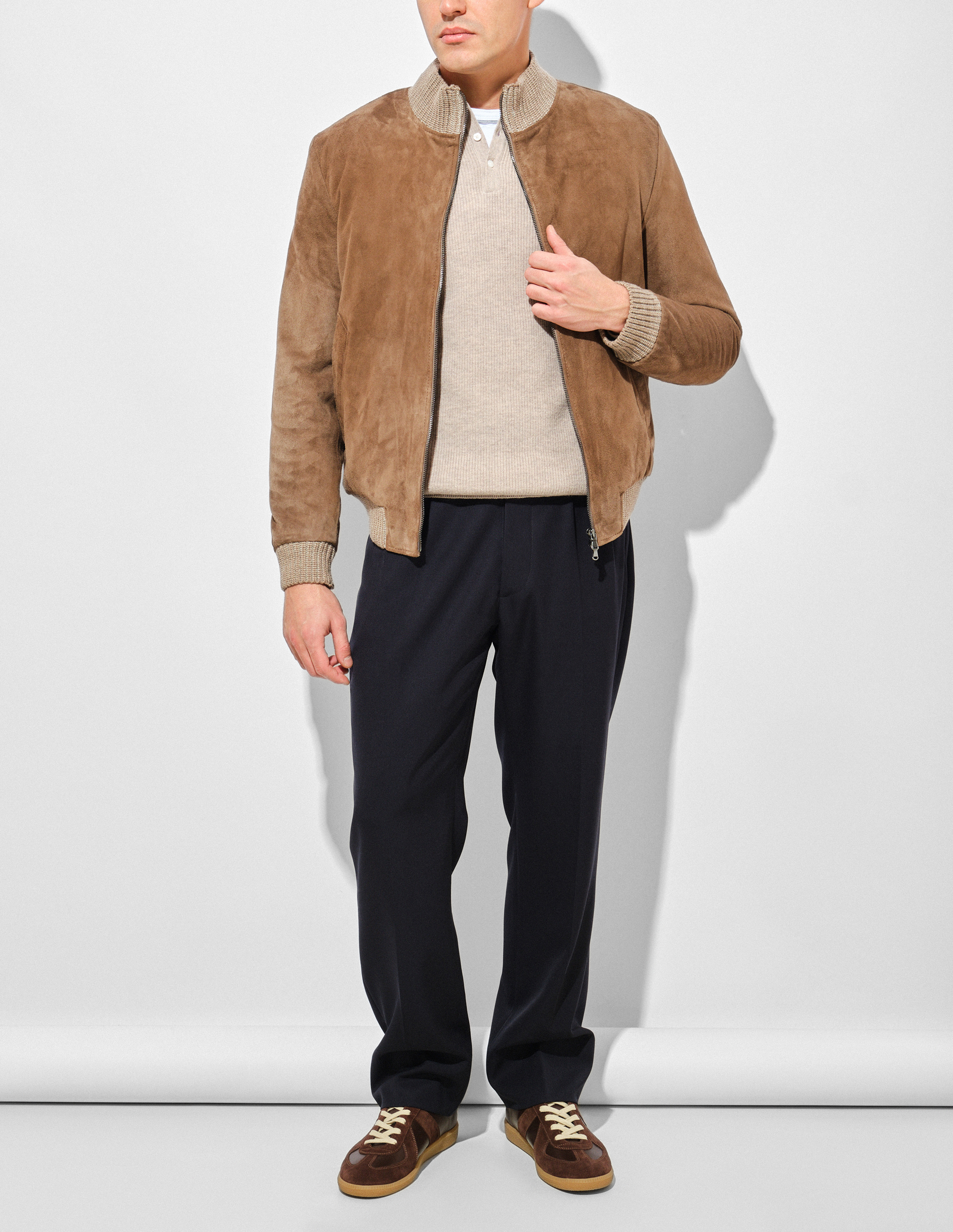 Окунитесь в изысканное сочетание брутальной красоты и комфорта вместе с бомбером Paul Taylor. Данная модель олицетворяет концептуальный подход бренда к изготовлению вещей с истинным качеством Made in Italy и эксклюзивным стилем «new dandy», сочетающим классический крой с современными деталями. Куртка изготовлена из мягкой натуральной замши в оттенке Taupe премиальной выделки с трикотажной ребристой отделкой профиля, дополнена боковыми карманами и надежной центральной молнией с легким ходом. Внутри — стеганая сатиновая подкладка со слоем утеплителя, позволяющим носить бомбер в холодный сезон.