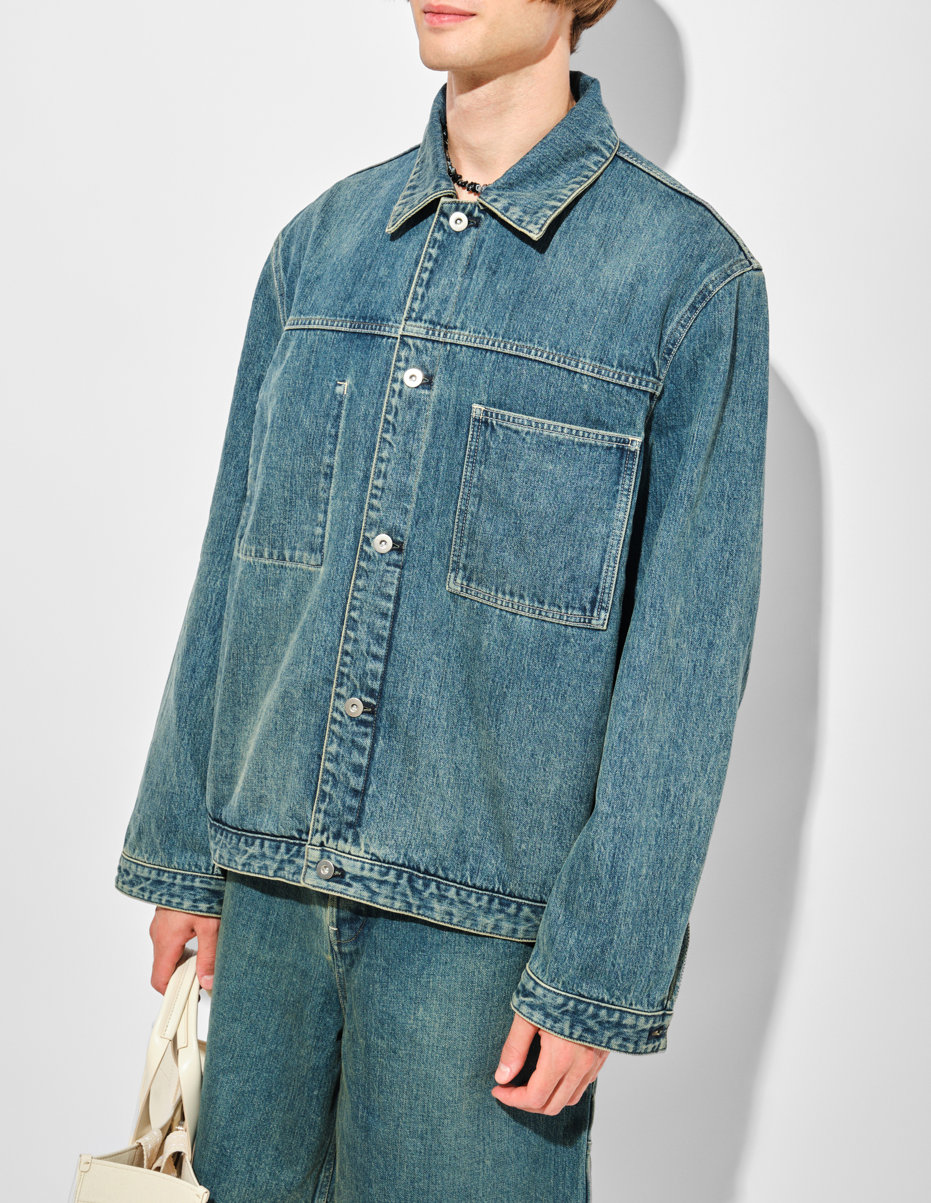 Джинсовая куртка из линейки Wardrobe от Jil Sander воплощает квинтэссенцию бренда — чистый минимализм, выраженный через лаконичный дизайн, безупречную конструкцию и точность линий. Произведенная в Японии, она отражает высочайшее мастерство работы с денимом: плотное переплетение нитей обеспечивает прочность, идеальную посадку и способность ткани со временем приобретать индивидуальный характер. Классический крой включает застежку на пуговицы, строгий воротник и два нагрудных кармана — внешний и внутренний, где каждая деталь тщательно продумана. Японские мастера уделили особое внимание швам и строчке, добиваясь не только визуальной безупречности, но и исключительной долговечности. Эта куртка — идеальный синтез восточных традиций качества и европейской эстетики минимализма, создающий вещь вне времени, которая останется актуальной на протяжении многих сезонов.