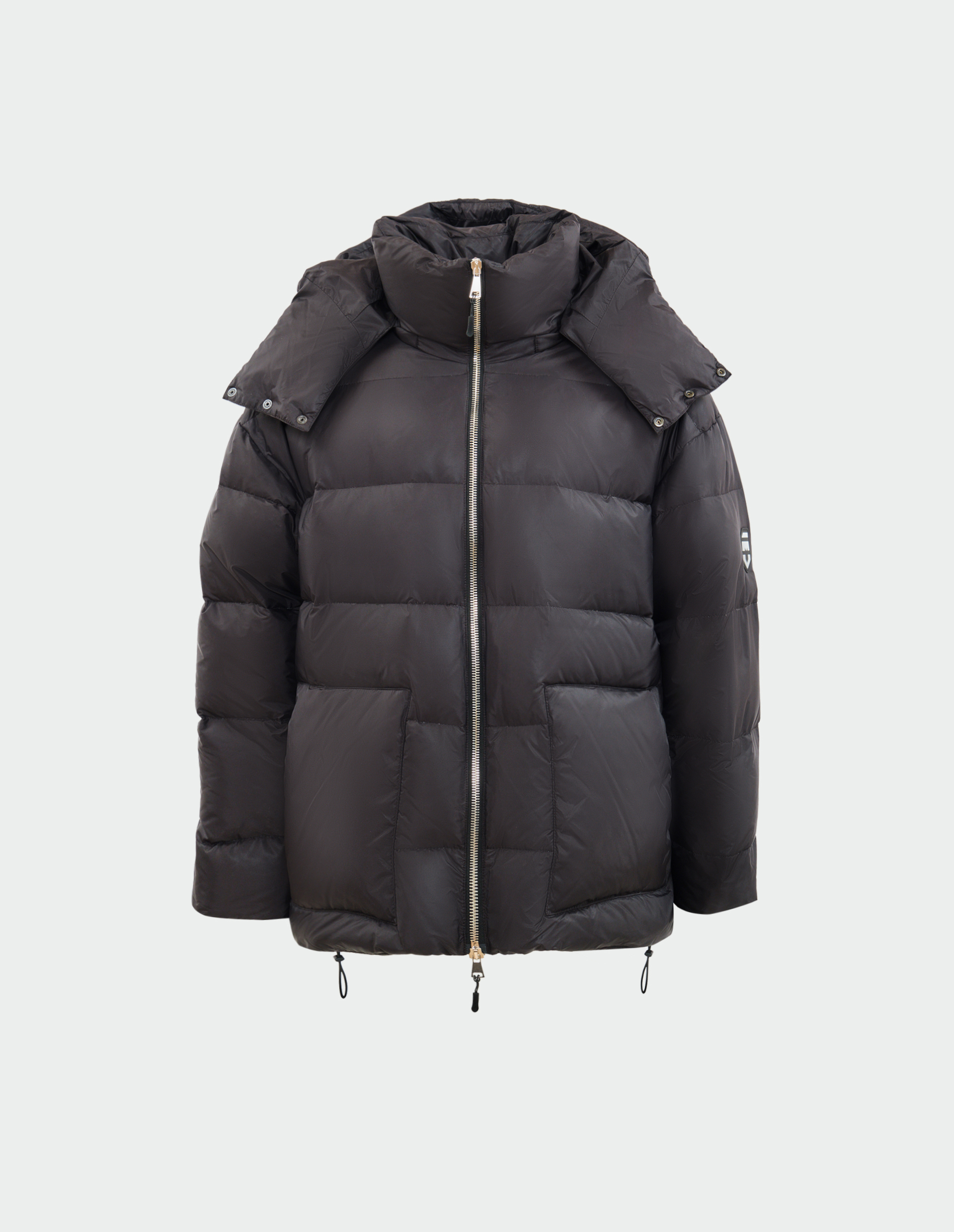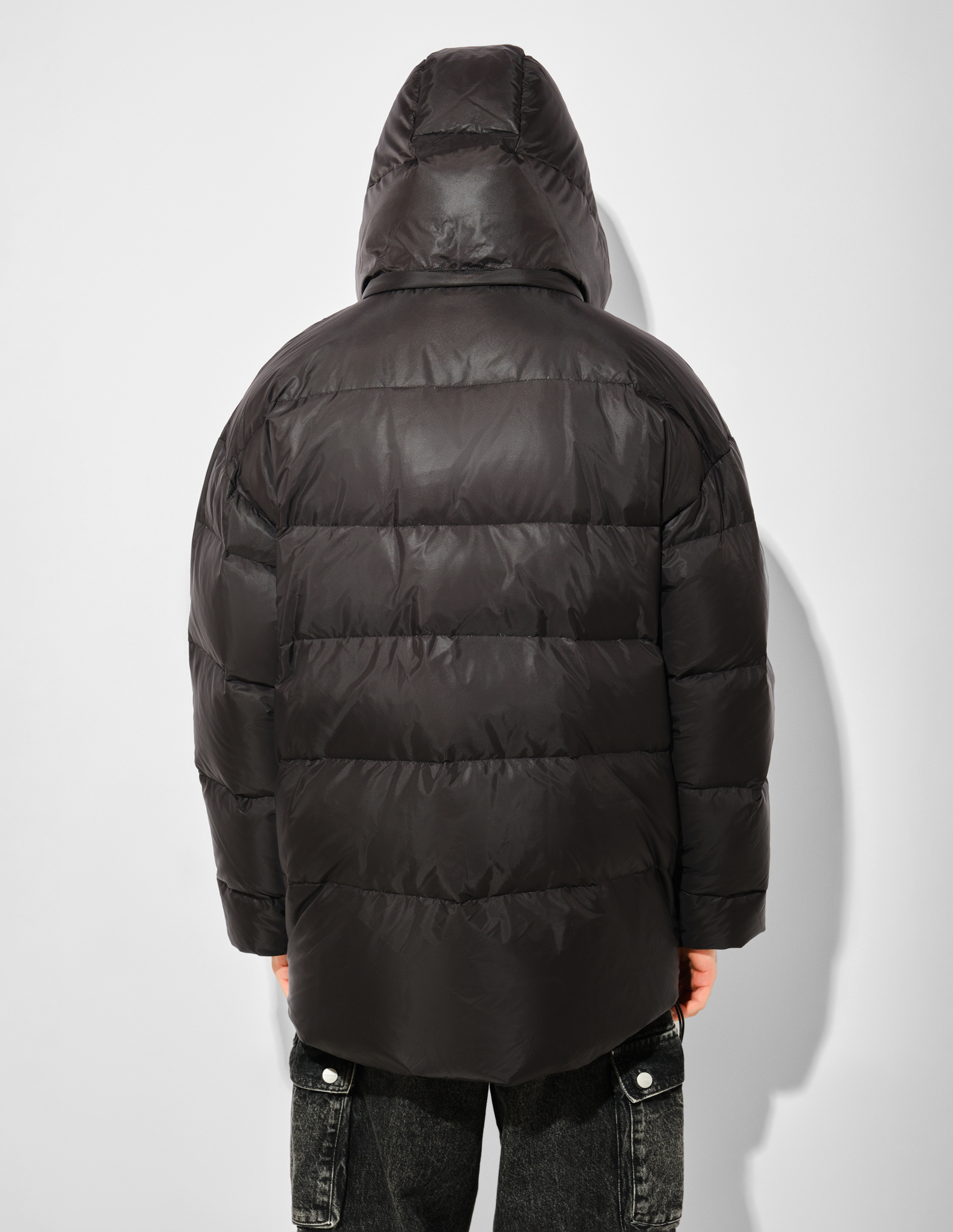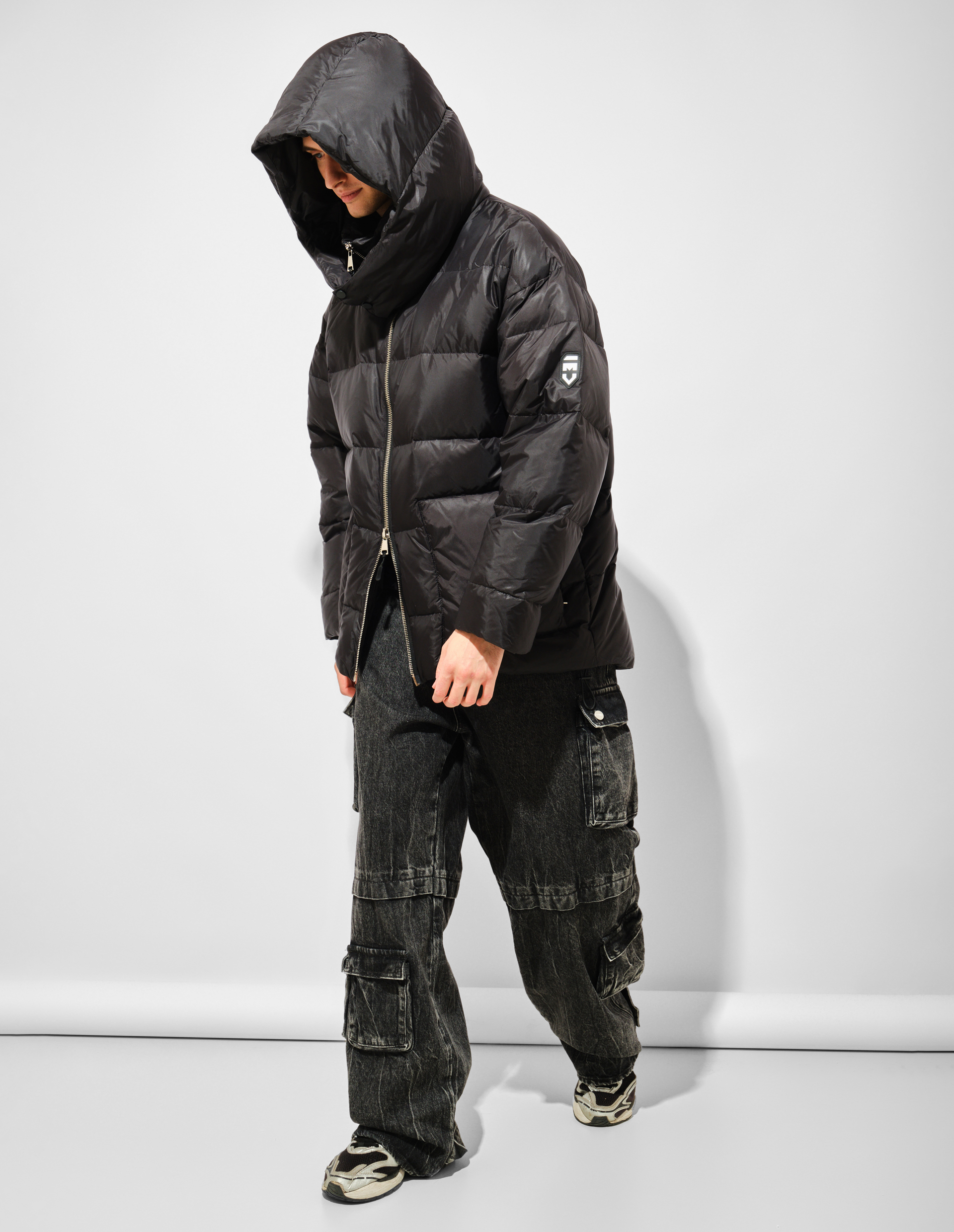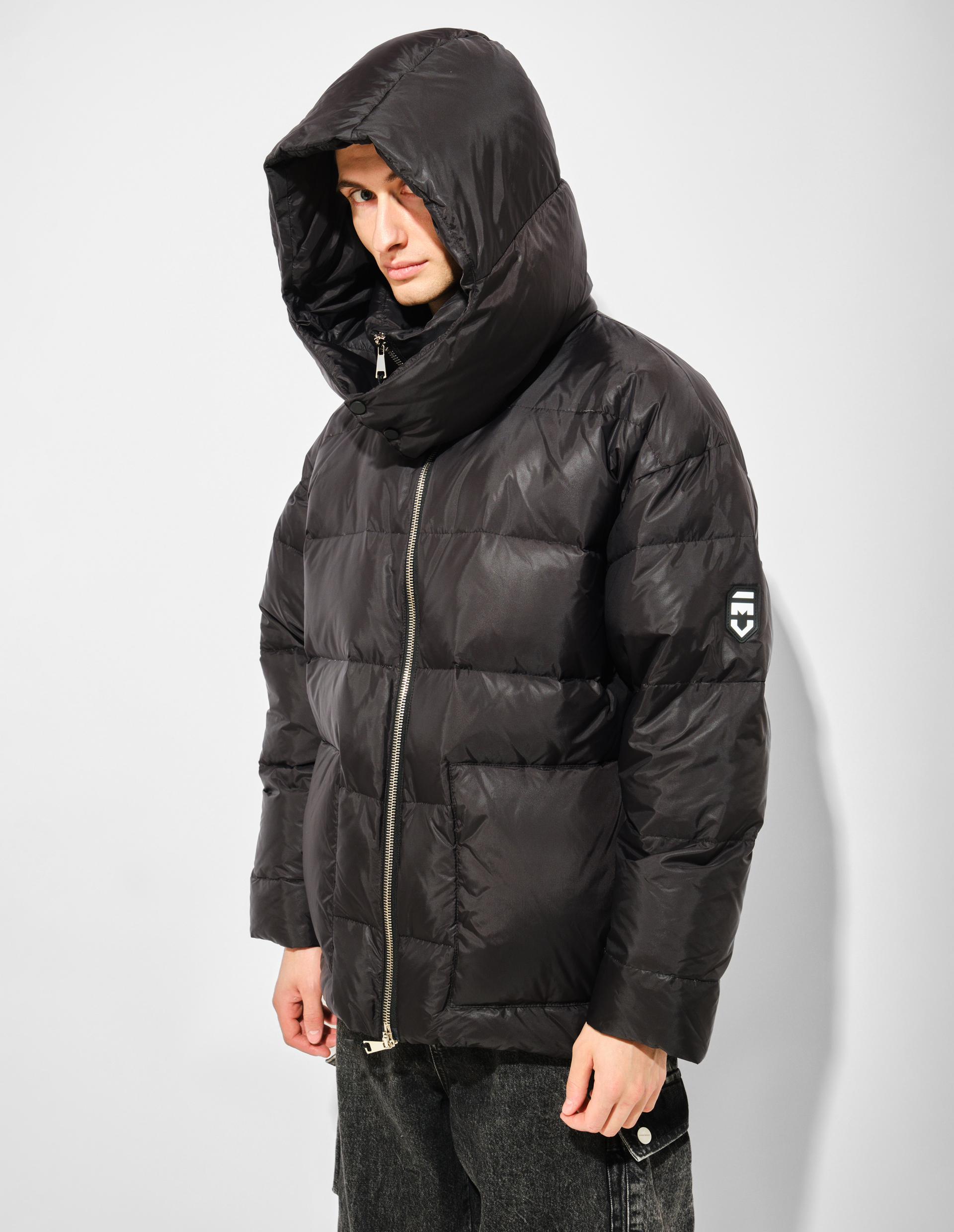 Черный пуховик из глянцевого нейлона воплощает амбициозную философию MIRA, устремленную в завтра. Стеганая модель с трендовым объемом и ультралегким наполнителем создает современный силуэт, подчеркивая динамику городского ритма. Встречная серебристая молния гармонирует с блестящей поверхностью, а съемный капюшон с рядом кнопок обеспечивает защиту от непогоды. Функциональность дополняют боковые карманы, сохраняющие чистоту линий. Как и вся продукция, пуховик изготовлен в Италии с применением переработанных материалов, отражая стремление к устойчивому развитию. Эта модель заряжает уверенностью, соединяя инновации с осознанным производством для тех, кто следует философии смелых решений.