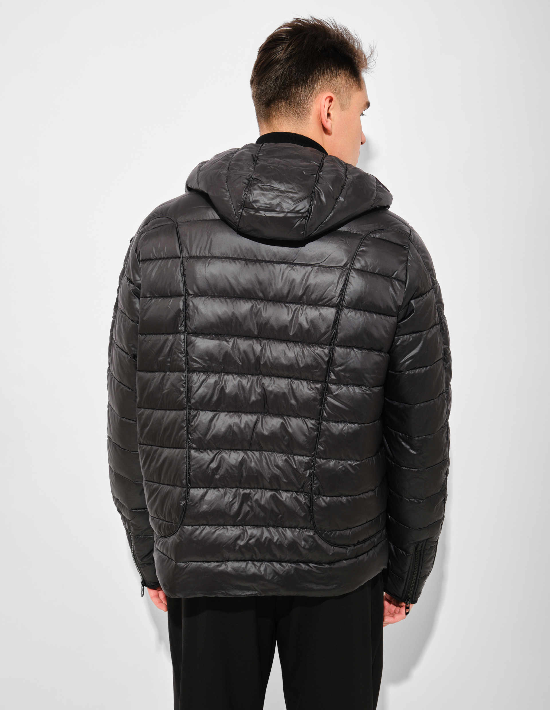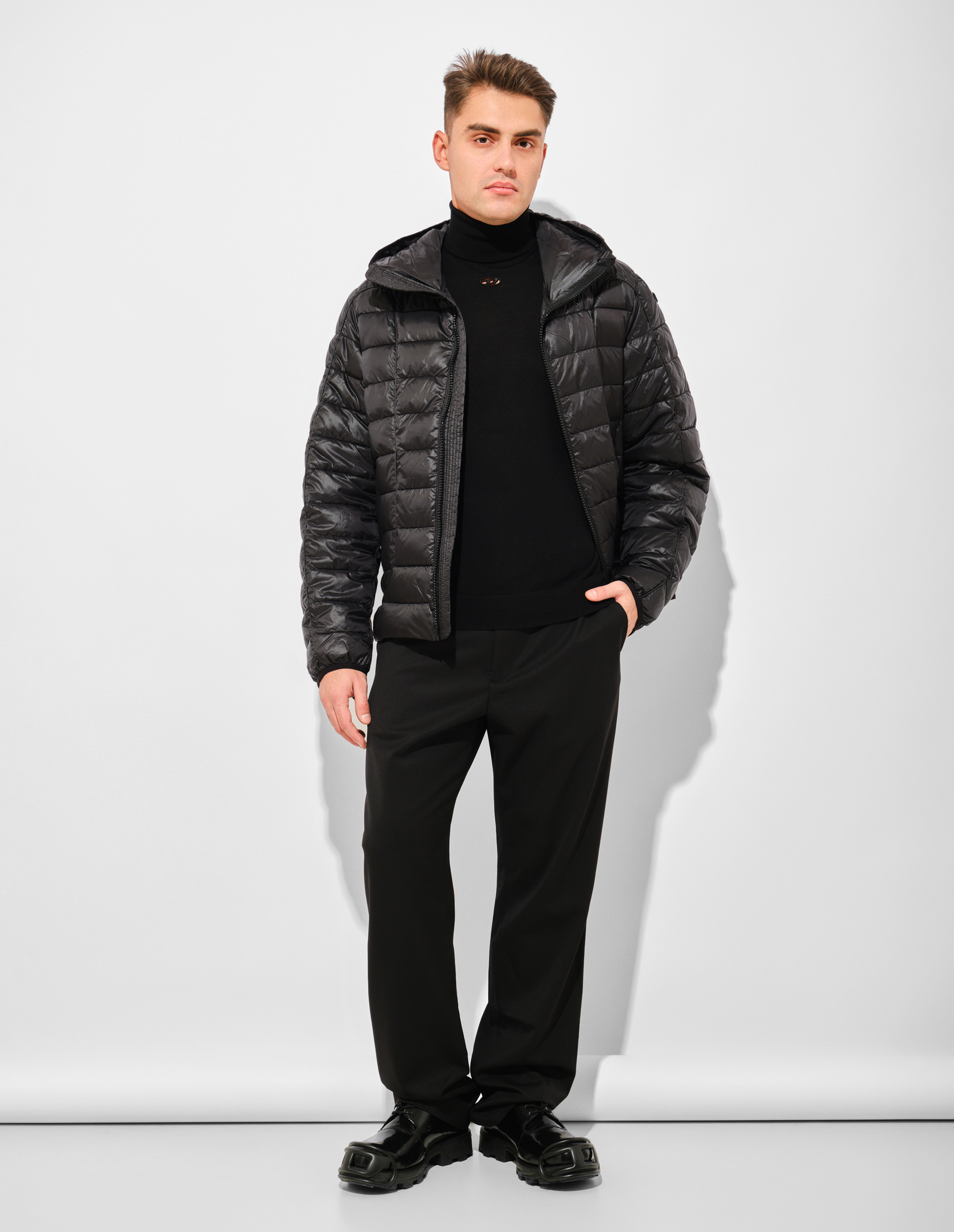 Стеганая куртка из сверхлегкого нейлона бросает вызов стереотипам утилитарной одежды. Технологичное наполнение сохраняет тепло, не утяжеляя силуэт, а фирменная молния с логотипом и вышитая на рукаве Oval D подчеркивают сдержанную эстетику бренда. Конструкция модели от верхнего слоя до подкладки и утеплителя на 100% состоит из переработанного полиэстера, сокращая использование первичных ресурсов. Этот подход отражает философию Diesel: прогрессивный дизайн неотделим от ответственности перед планетой, а функциональность может быть экологичной без компромиссов в стиле.