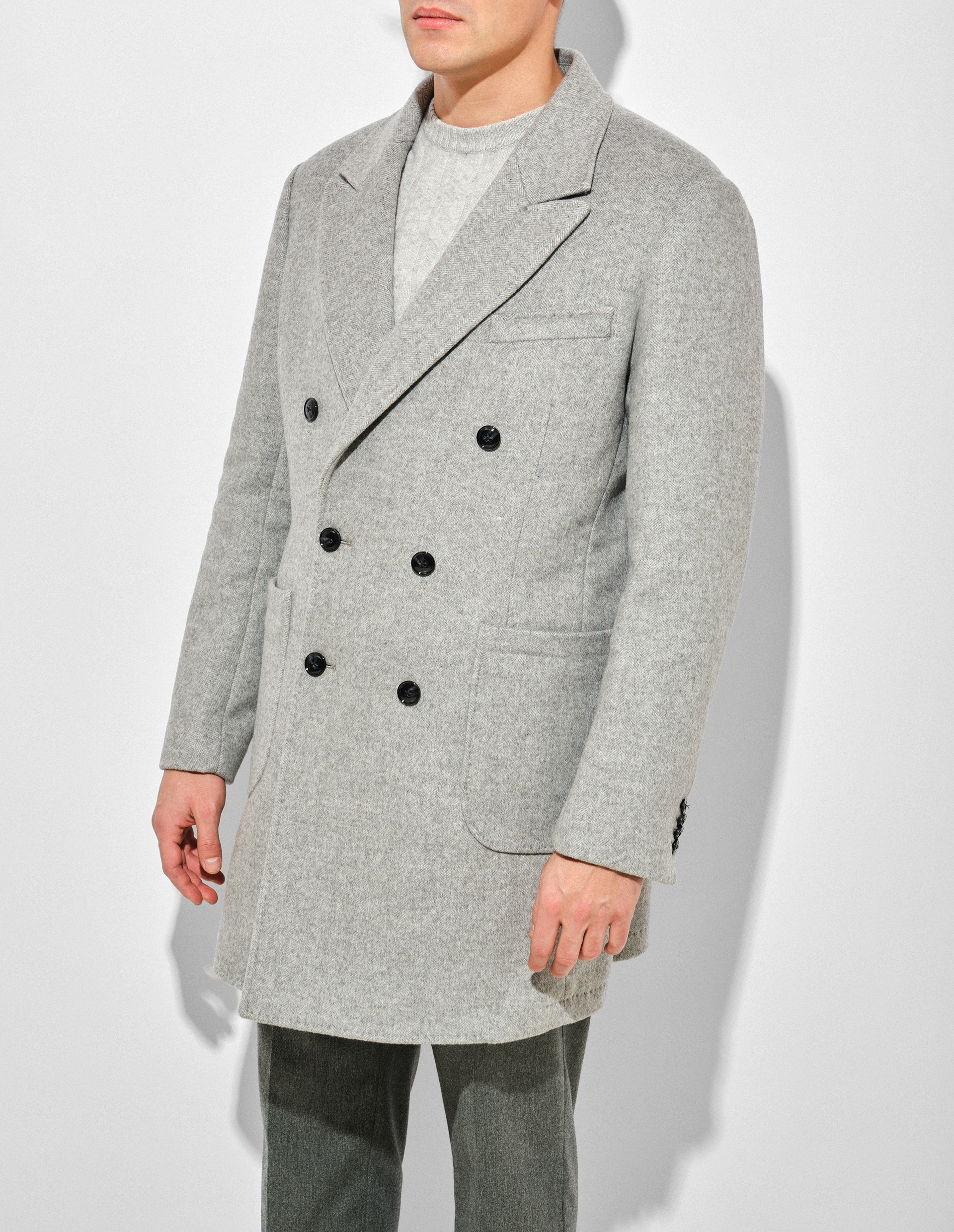 Двубортное пальто в оттенке Grigio из смесовой шерсти вдохновлено захватывающим контрастом черных пляжей Исландии и пенистых белых волн, воплощая дух элегантности, приключений, делая его идеальным спутником ваших городских путешествий. Почувствуйте его стиль, словно запечатленный на потрясающем фоне природы и реализованный в четких копьевидных лацканах, широких накладных карманах, комфортной длине до середины бедра.
